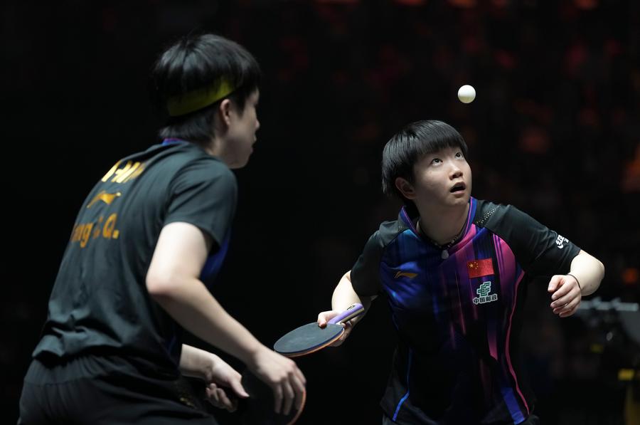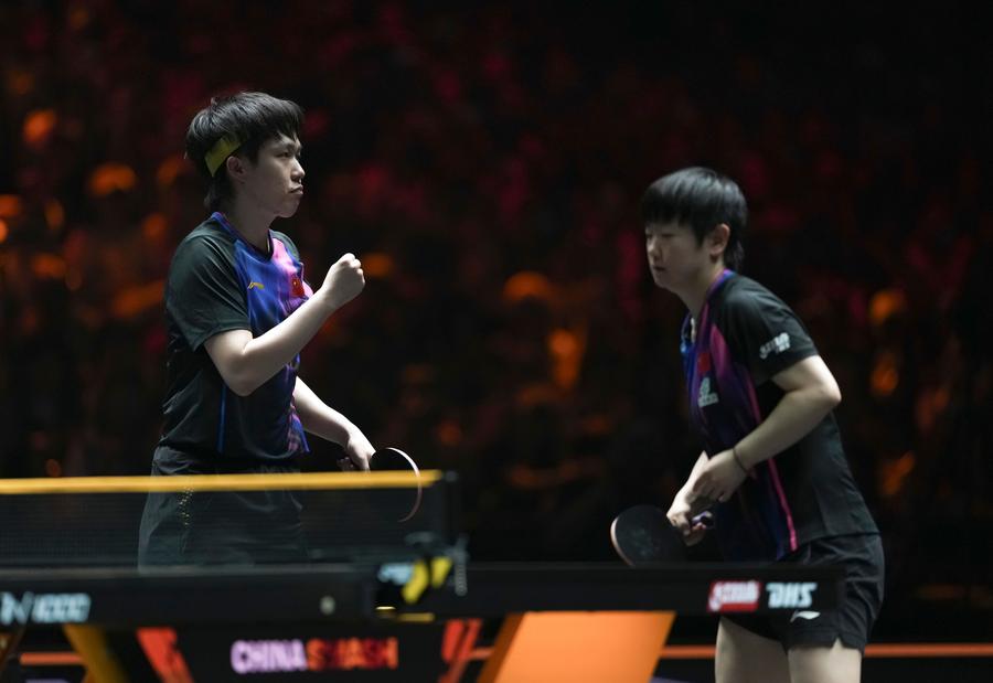 BEIJING, Sept. 30 (Xinhua) -- Three-time world champions Wang Chuqin and Sun Yingsha overcame an early deficit to reach the mixed doubles last eight on home soil at the World Table Tennis (WTT) China Smash on Tuesday.