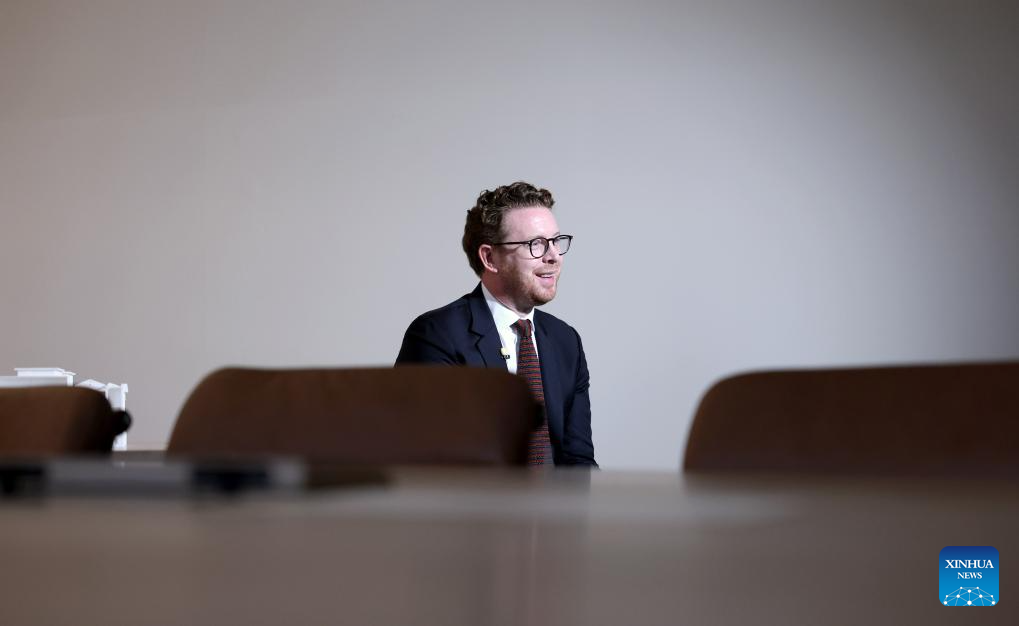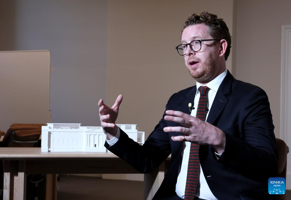Nicholas Cullinan, director of the British Museum, speaks during an interview with Xinhua in London, Britain, Sept. 29, 2025.(Xinhua/Li Ying)