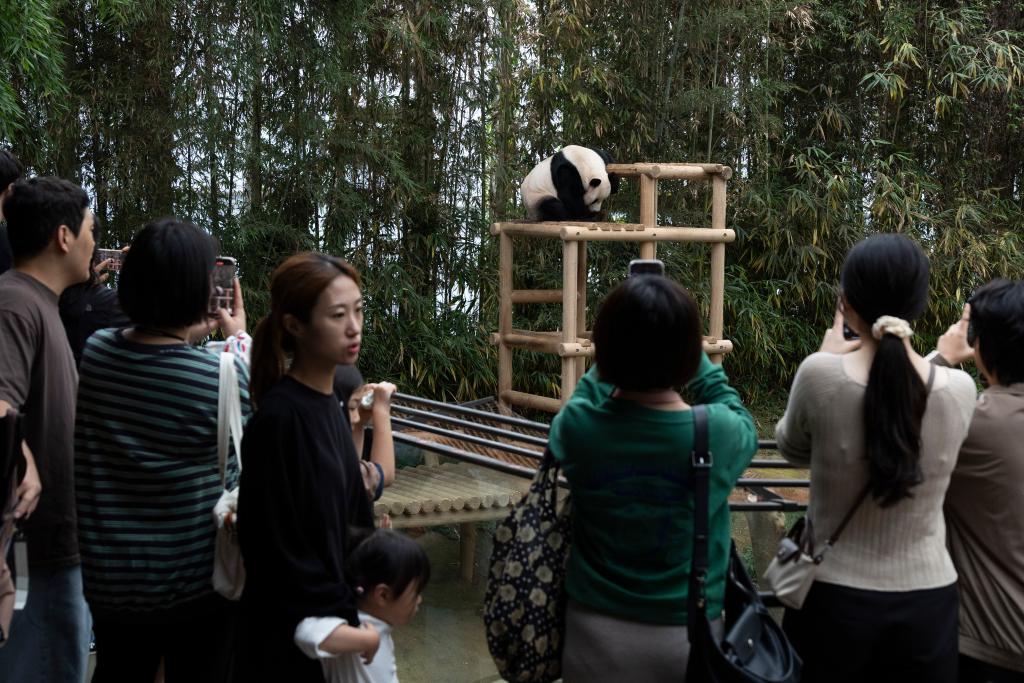YONGIN, South Korea, Oct. 1 (Xinhua) -- Ai Bao and Le Bao, the giant panda couple residing at Everland Resort in Yongin, South Korea, have become immensely beloved since their arrival in 2016.