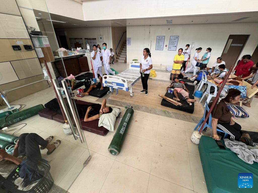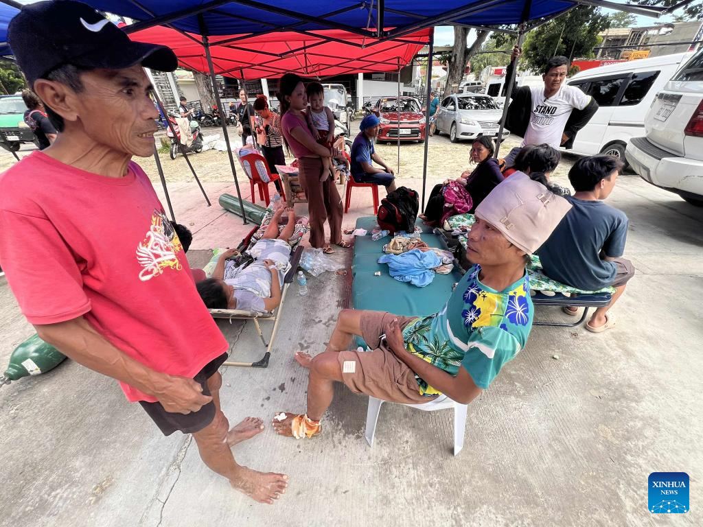 Victims arrive at Cebu Provincial Hospital after a 6.9-magnitude earthquake shook Cebu province, the Philippines, on Oct. 1, 2025. At least 26 people were killed and 147 others were injured as an offshore 6.9-magnitude earthquake hit Cebu province in the central Philippines on Tuesday night, the Philippines' National Disaster Risk Reduction and Management Council reported on Wednesday. The death toll is expected to climb as more reports trickle in. (Str/Xinhua)