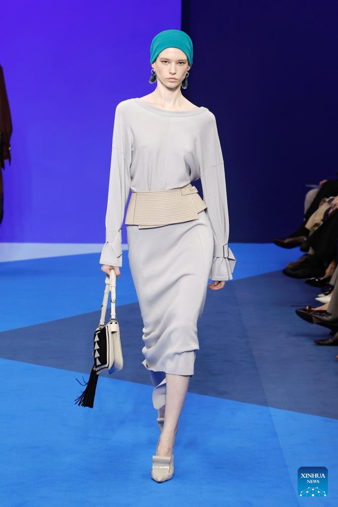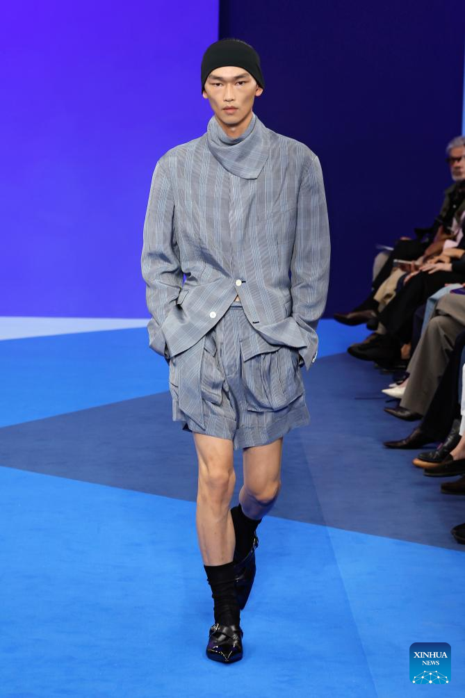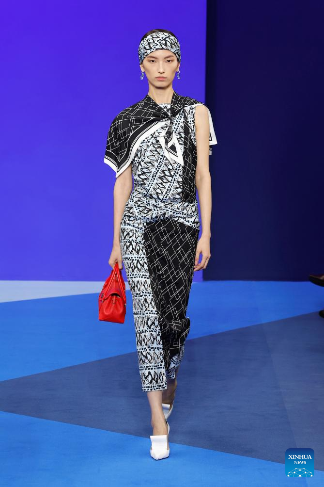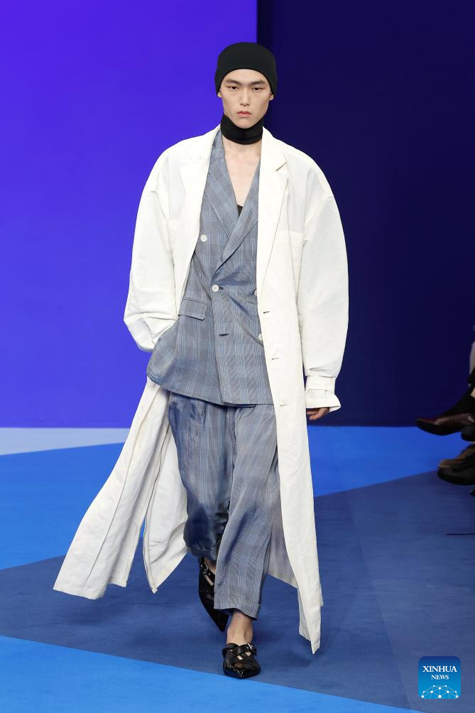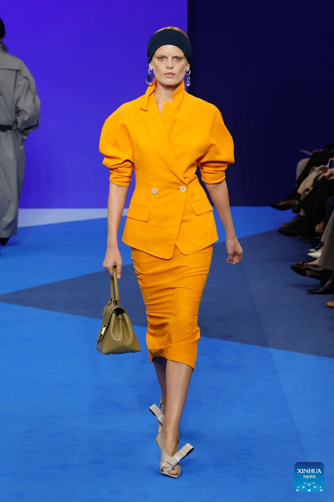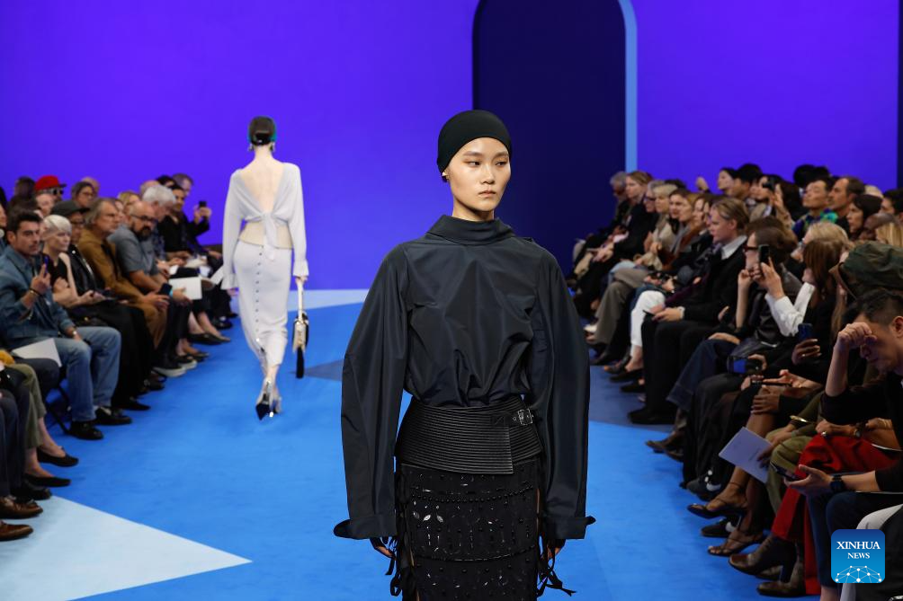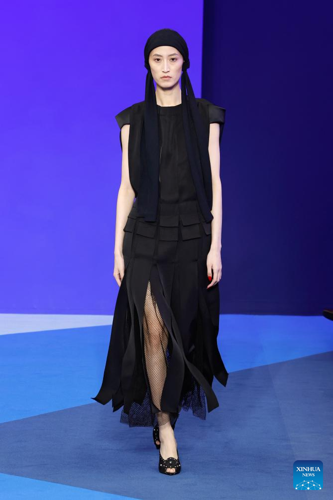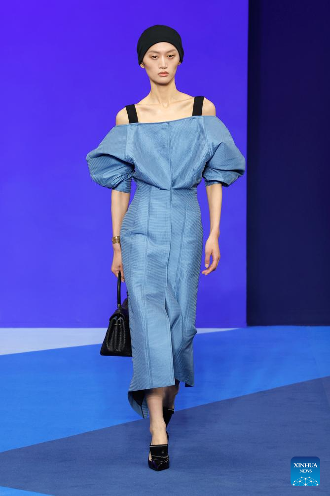 A model presents creations from the ready-to-wear Spring/Summer 2026 collections by Lanvin during the Paris Fashion Week, in Paris, France, on Sept. 30, 2025. (MeetEurope/Handout via Xinhua)