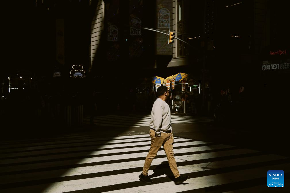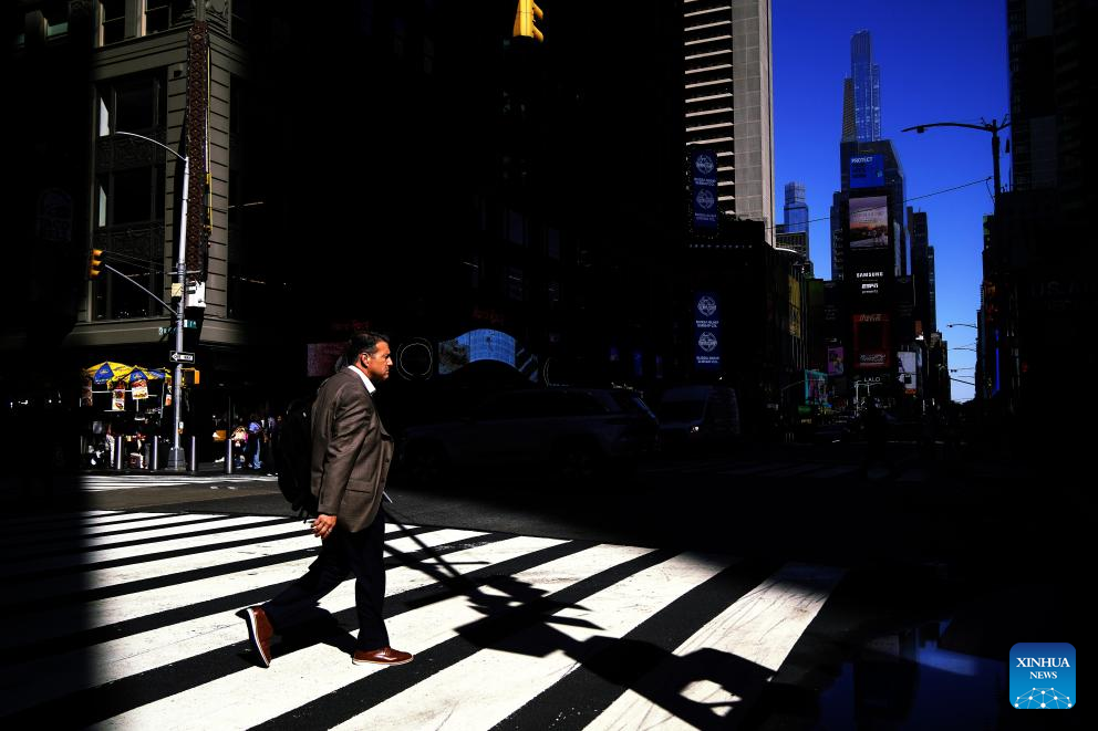 A man walks on the street in Manhattan, New York, on Oct. 1, 2025. The U.S. federal government entered a shutdown at the start of Wednesday as partisan divisions prevented Congress from passing a funding bill, which marks the first government shutdown in nearly seven years. (Xinhua/Wu Xiaoling)