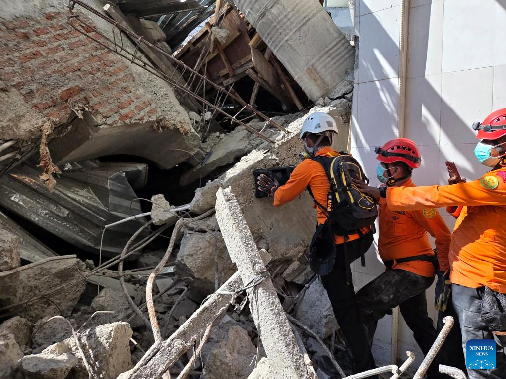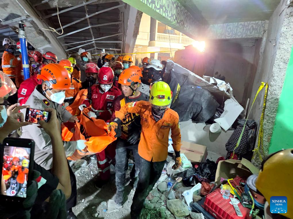 JAKARTA, Oct. 1 (Xinhua) -- The death toll from the collapse of a school building in Indonesia's East Java province has risen to five, with 84 people still trapped under the rubble, the regional rescue agency said on Wednesday.