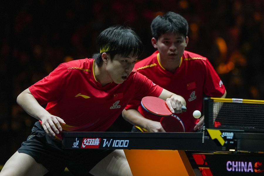 Later on Wednesday, Wang and Lin Shidong defeated Sweden's 2021 world champions Mattias Falck and Kristian Karlsson 11-8, 11-5, 11-5 to reach the men's doubles quarterfinals.