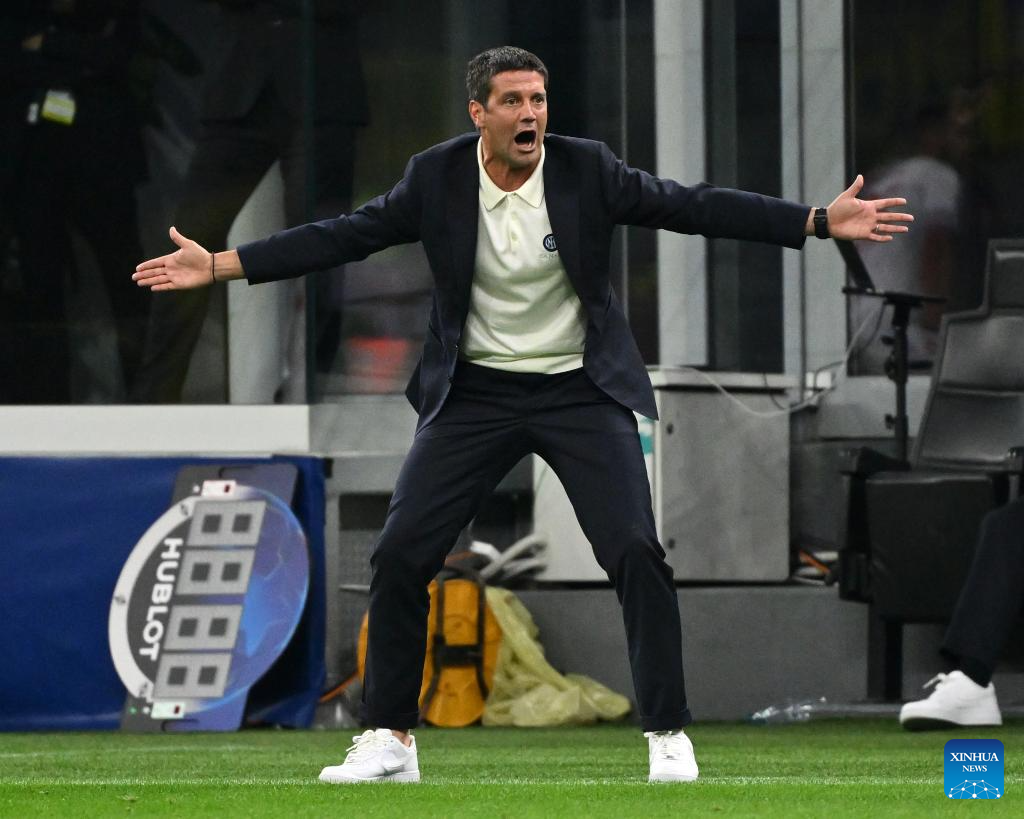 Inter Milan's head coach Christian Chivu gestures during the UEFA Champions League match between Inter Milan and Slavia Praha in Milan, Italy, Sept.30, 2025. (Xinhua)