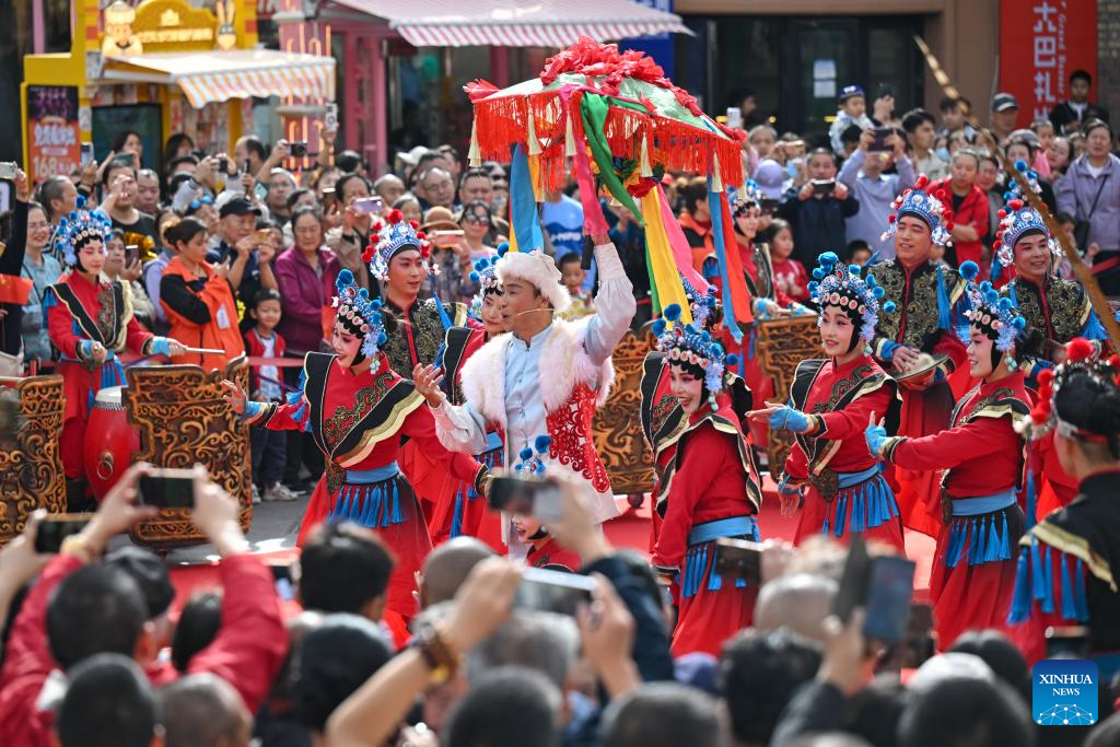 Tourists enjoy a performance at the Xinjiang International Grand Bazaar in Urumqi, northwest China's Xinjiang Uygur Autonomous Region, Oct. 1, 2025. (Xinhua/Ding Lei)