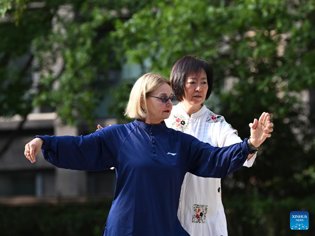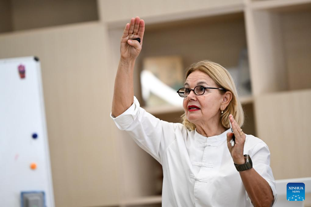 Vitomira Loncar learns Taichi after work in Xi'an, northwest China's Shaanxi Province, Sept. 25, 2025.(Xinhua/Zou Jingyi)