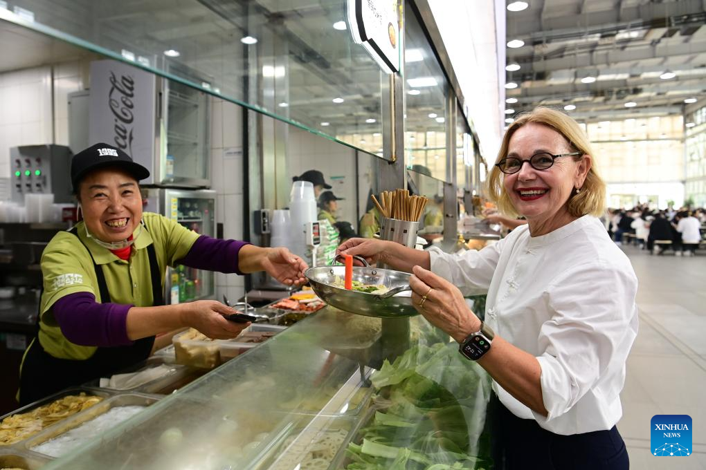Vitomira Loncar buys a meal at a cafeteria of Xi'an Eurasia University in Xi'an, northwest China's Shaanxi Province, Sept. 25, 2025.(Xinhua/Zou Jingyi)