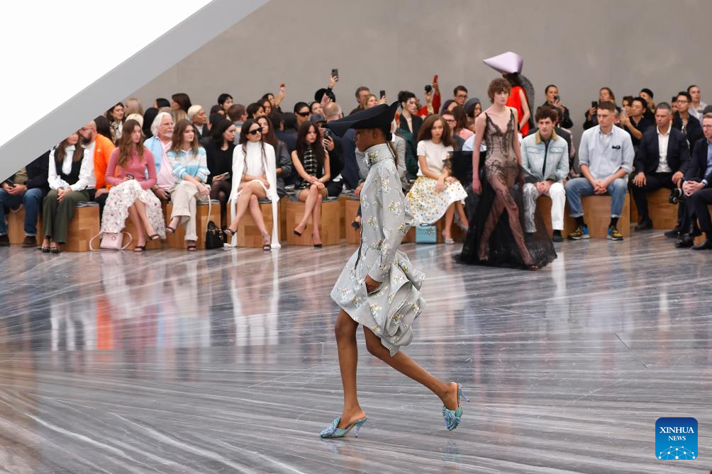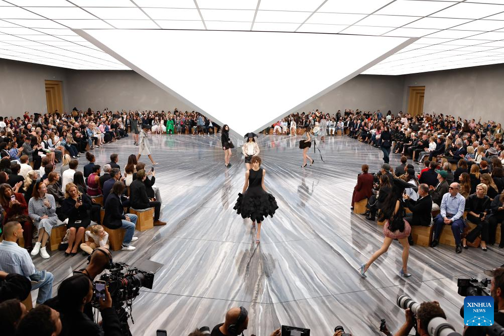 People watch models presenting creations from the ready-to-wear Spring/Summer 2026 collections by French fashion house Christian Dior during the Paris Fashion Week in Paris, France, on Oct. 1, 2025. (MeetEurope/Handout via Xinhua)