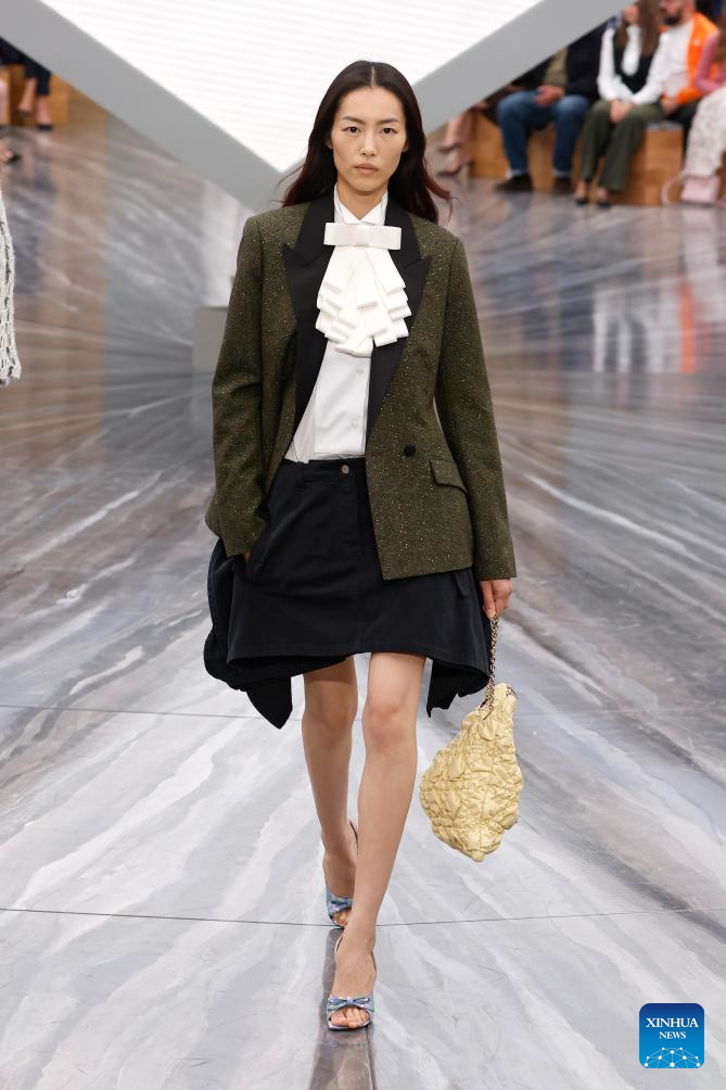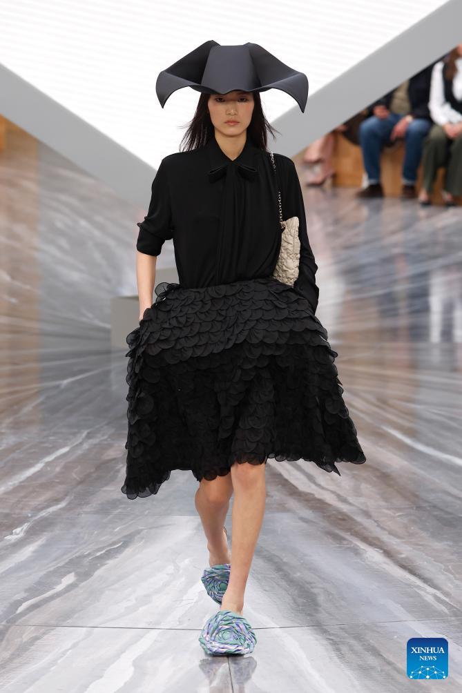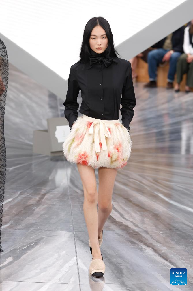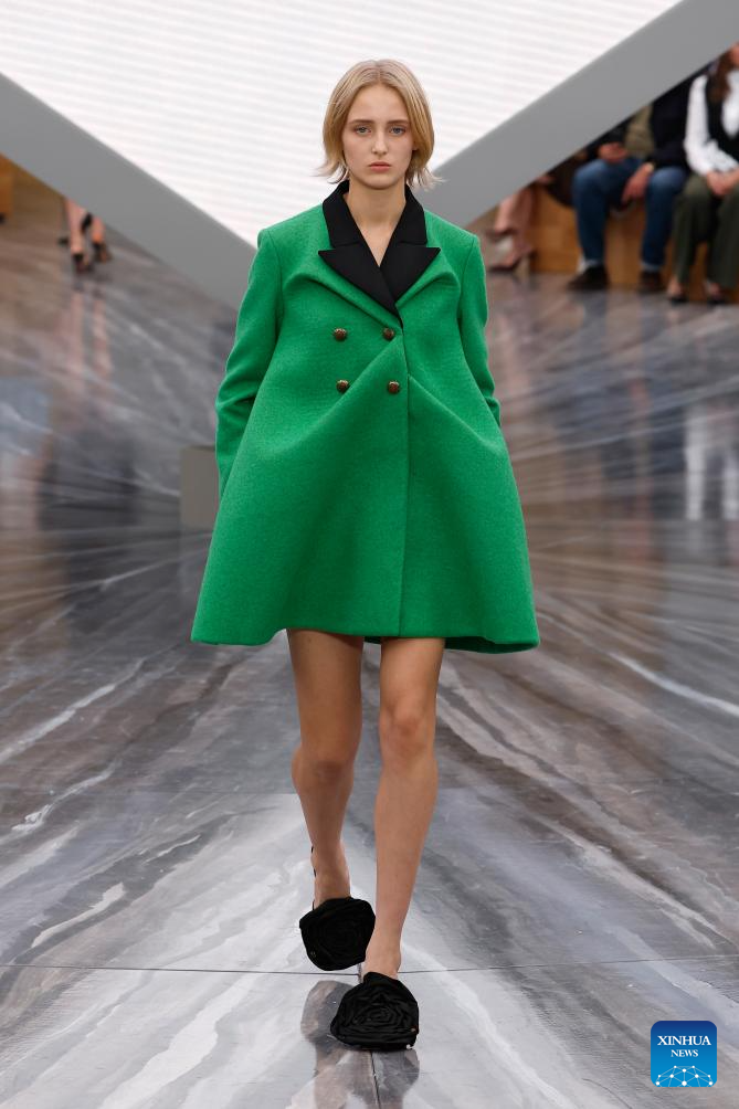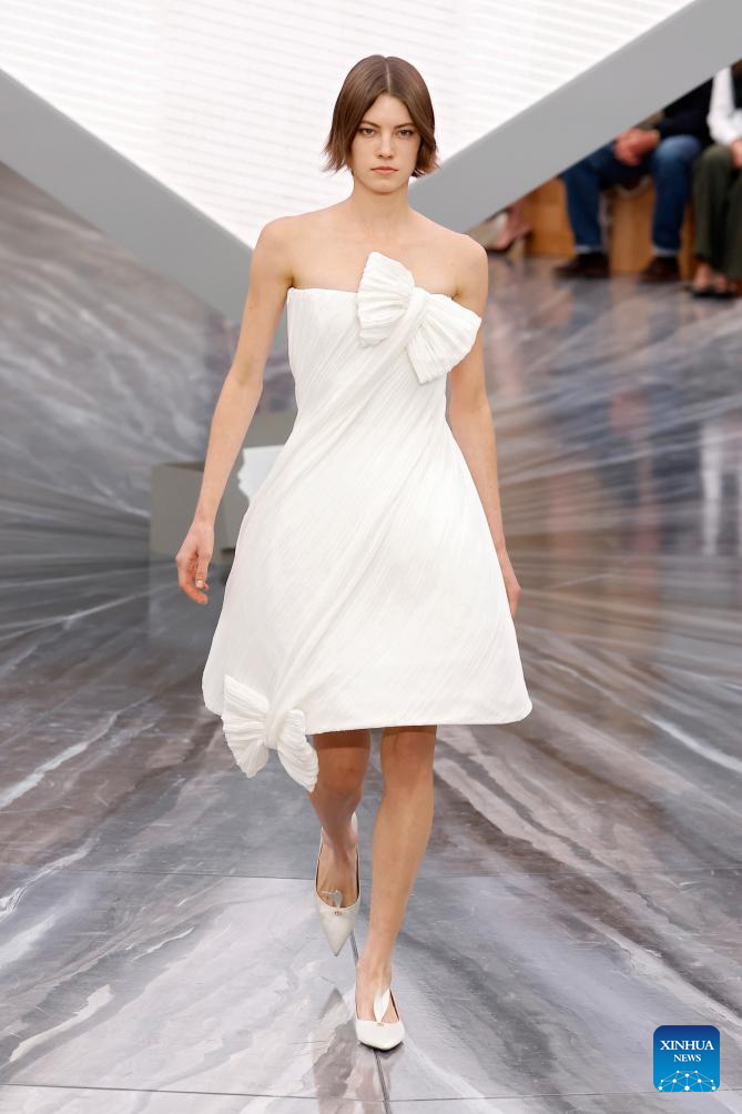 A model presents a creation from the ready-to-wear Spring/Summer 2026 collections by French fashion house Christian Dior during the Paris Fashion Week in Paris, France, on Oct. 1, 2025. (MeetEurope/Handout via Xinhua)