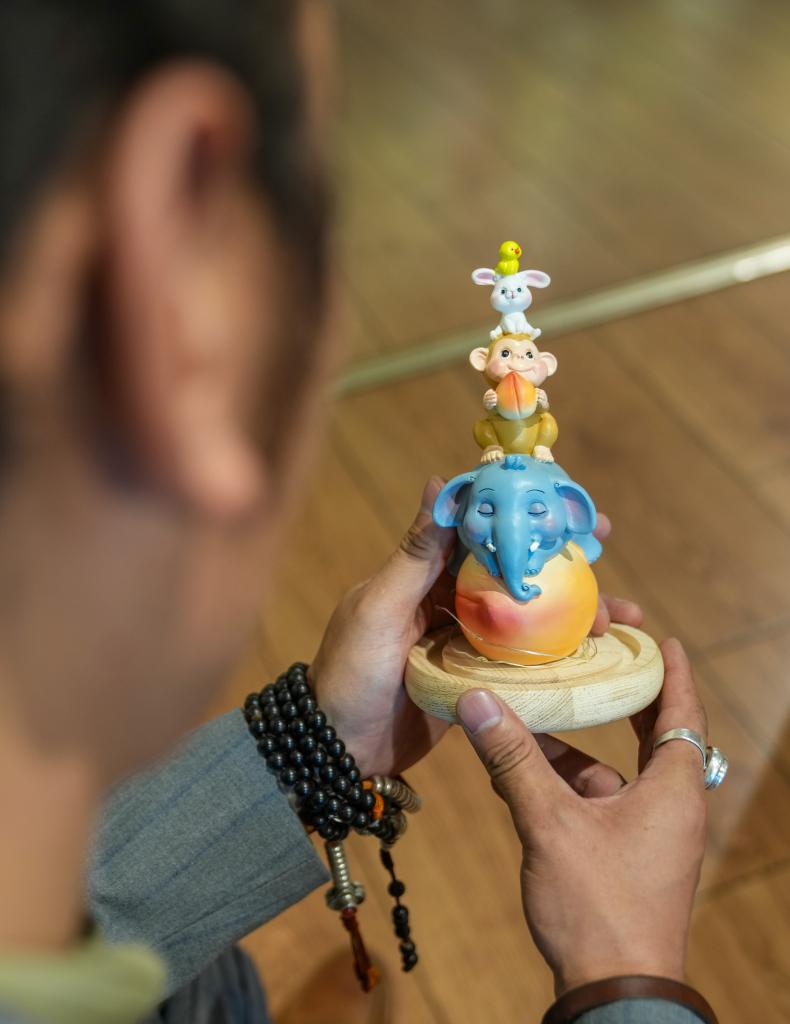 Tashi Badan checks the quality of cultural and creative products at Yakhore Design Company in Lhasa, southwest China's Xizang Autonomous Region, Sept. 16, 2025. Tashi Badan, 29, is the founder of Yakhore Design Company in southwest China's Xizang Autonomous Region. In recent years, he has led his team to develop a variety of Tibetan culture-themed products such as decorative items, art pieces and fridge magnets. Describing himself as "a bridge," Tashi Badan promotes products through short videos and live streaming, helping local artists reach a broader audience.
