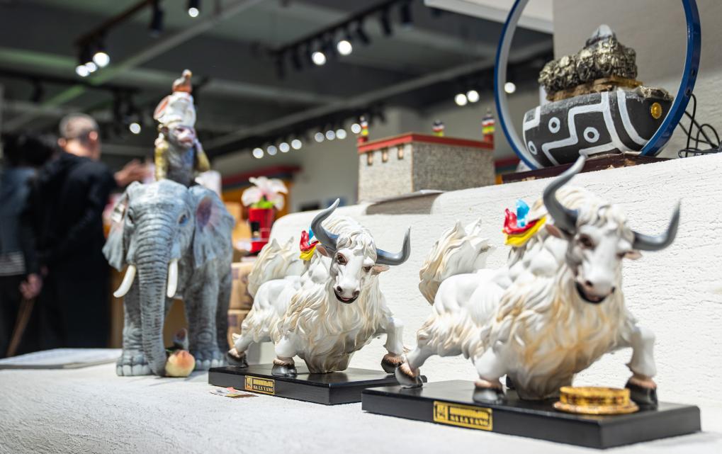This photo taken on Sept. 29, 2025 shows cultural and creative ornaments designed by Yakhore Design Company in Lhasa, southwest China's Xizang Autonomous Region. Tashi Badan, 29, is the founder of Yakhore Design Company in southwest China's Xizang Autonomous Region. In recent years, he has led his team to develop a variety of Tibetan culture-themed products such as decorative items, art pieces and fridge magnets. Describing himself as "a bridge," Tashi Badan promotes products through short videos and live streaming, helping local artists reach a broader audience.