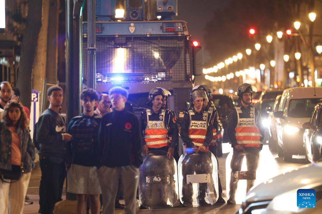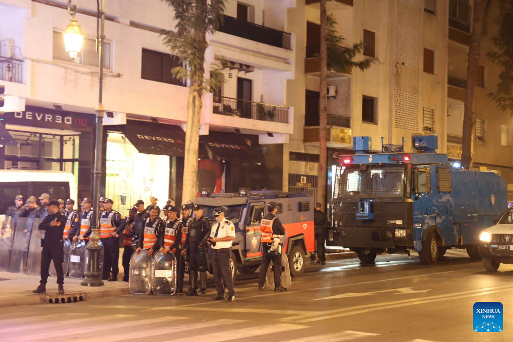 On Thursday night at a crossroads near Avenue France in downtown Rabat, Xinhua observed about 50 protesters chanting slogans, while roughly 20 security vehicles and nearly 100 officers stood on guard nearby.