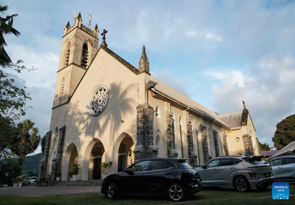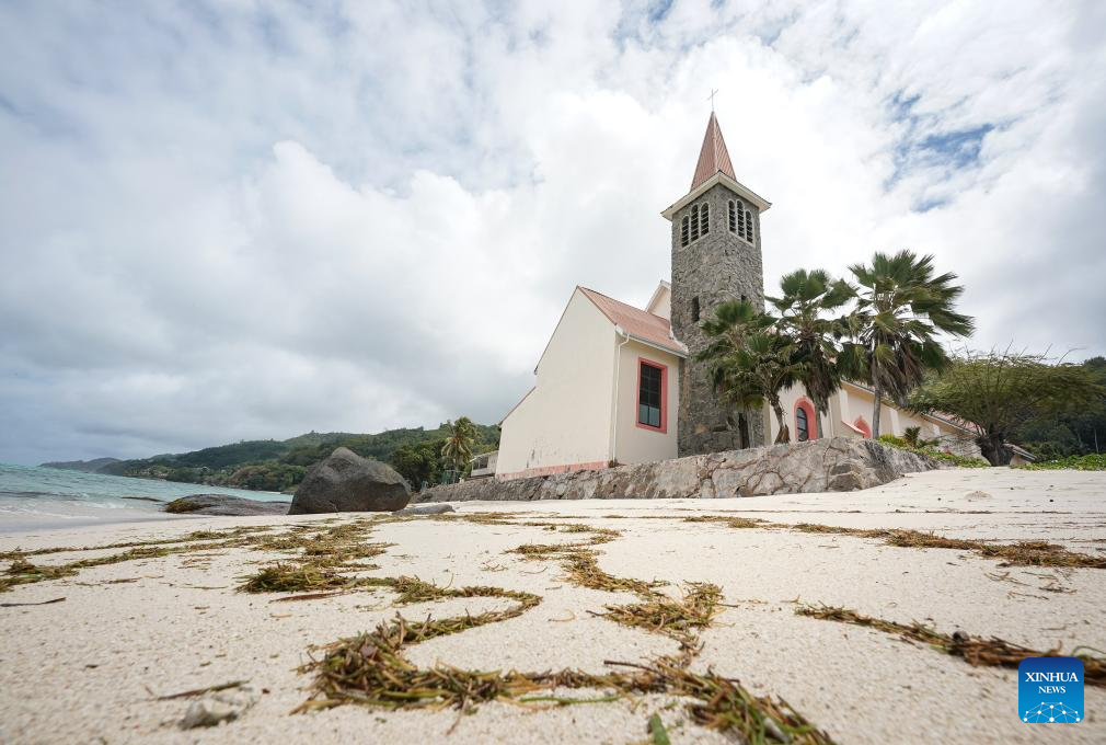 This photo taken on Sept. 27, 2025 shows a church on Mahe Island, Seychelles. Seychelles is an Indian Ocean archipelago comprising 115 islands. Mahe Island, the largest among all islands of the nation, is home to the capital city Victoria and a renowned tourist destination. (Xinhua/Han Xu)