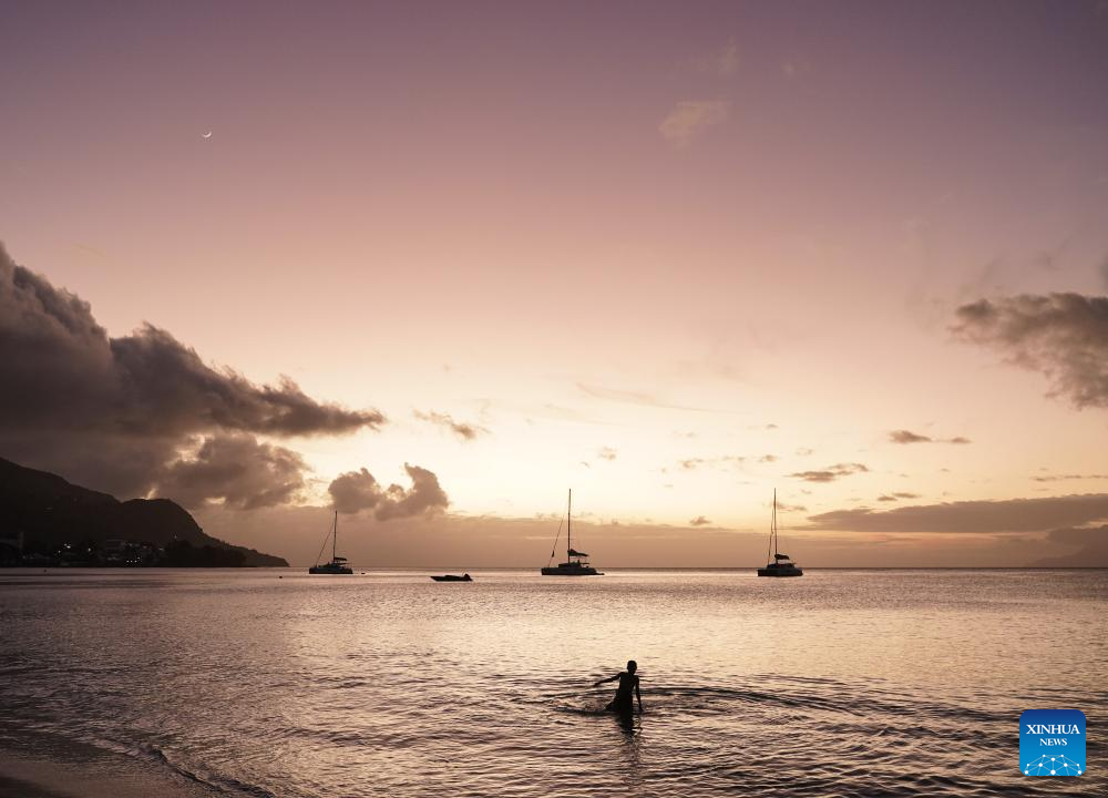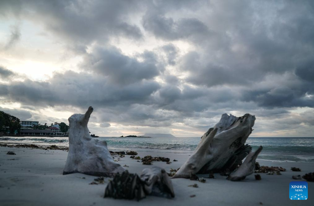 This photo taken on Sept. 24, 2025 shows a sunset view on Mahe Island, Seychelles. Seychelles is an Indian Ocean archipelago comprising 115 islands. Mahe Island, the largest among all islands of the nation, is home to the capital city Victoria and a renowned tourist destination. (Xinhua/Han Xu)