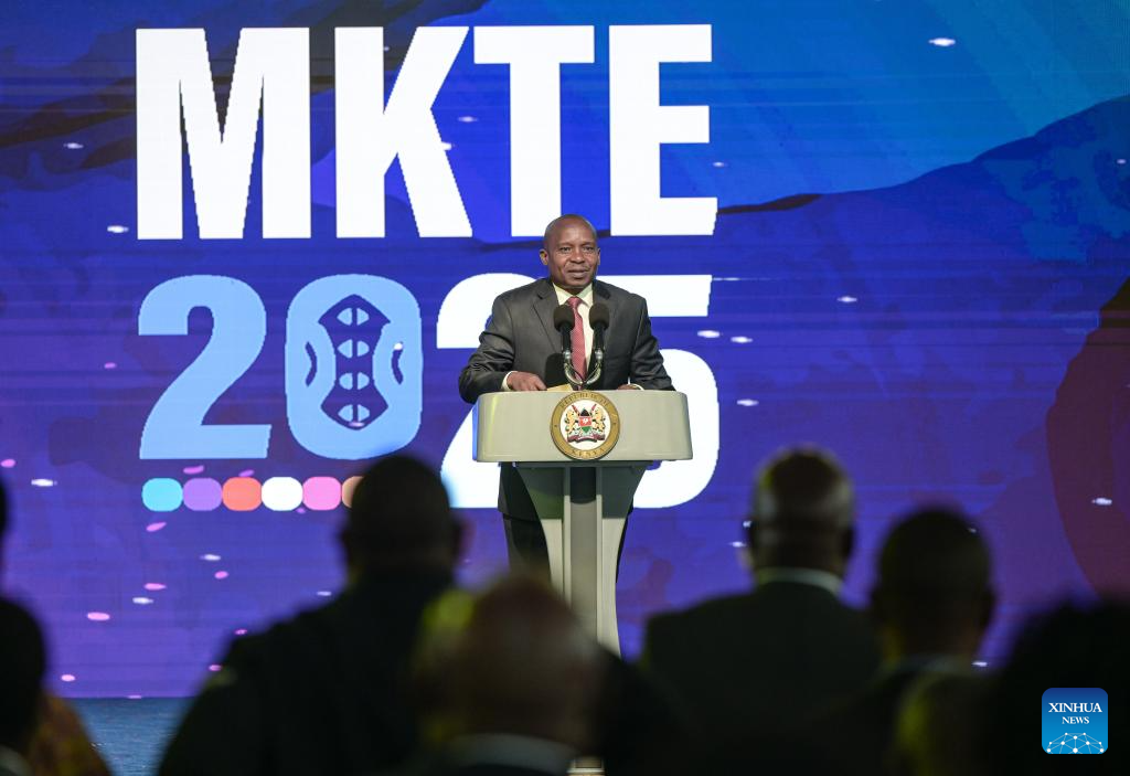 Kenyan Deputy President Kithure Kindiki addresses the 15th edition of the Magical Kenya Travel Expo in Nairobi, Kenya, Oct. 2, 2025. Kenya is hosting the three-day expo, running until Friday, which has attracted 6,500 delegates from 40 countries, including tourism ministers, city mayors, investors, travel enthusiasts, and promoters. (Xinhua/Yang Guang)
