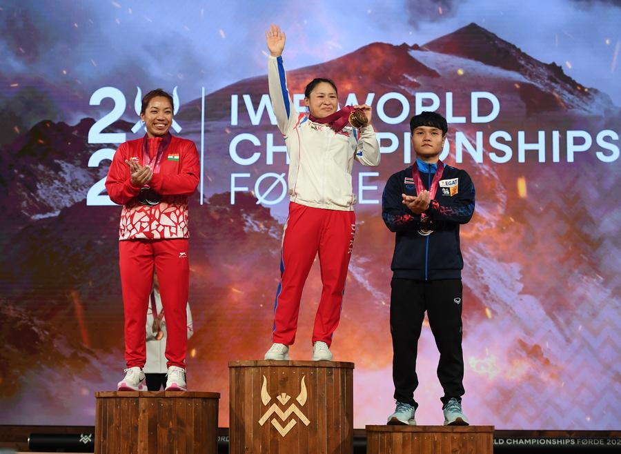 The 27-year-old posted results of 91kg in snatch, 122kg in clean and jerk, and a total of 213kg, sweeping the gold medals. India's Mirabai Chanu, silver medalist at the 2020 Olympics, came in second with lifts of 84-115-199, and Thailand's Thanyathon Sukcharoen, world champion in 2021 and 2022, was third on 88-110-198.