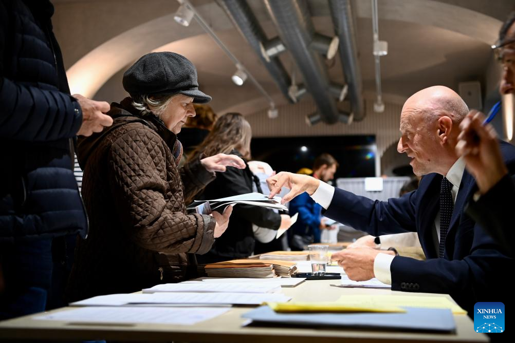 Citizens register to vote at a polling station in Prague, the Czech Republic, Oct. 3, 2025. Voting is underway in the Czech Republic's parliamentary elections, with polling stations opening at 2 p.m. local time on Friday. The two-day nationwide election will determine the 200 seats in the Chamber of Deputies, the lower house of parliament. (Xinhua/Zhang Haofu)