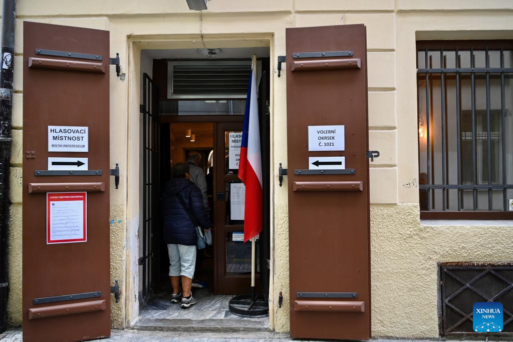 Citizens enter a polling station in Prague, the Czech Republic, Oct. 3, 2025. The two-day nationwide parliamentary elections will determine the 200 seats in the Chamber of Deputies, the lower house of parliament. (Xinhua/Zhang Haofu)