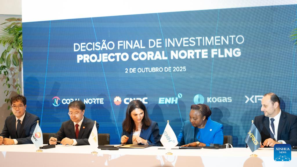 MAPUTO, Oct. 3 (Xinhua) -- The Coral North Floating Liquefied Natural Gas (FLNG) project in Mozambique reached its Final Investment Decision (FID) on Thursday, with a signing ceremony held in the capital, Maputo.
