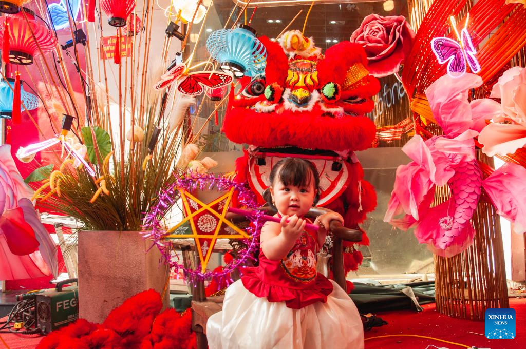 A child poses in front of festive decorations for the Mid-Autumn Festival in Hanoi, Vietnam, on Oct. 3, 2025. Hanoi's Hang Ma Street is brightly decorated with lanterns and festive items for the upcoming Mid-Autumn Festival. (Photo by Dang Hong Dung/Xinhua)