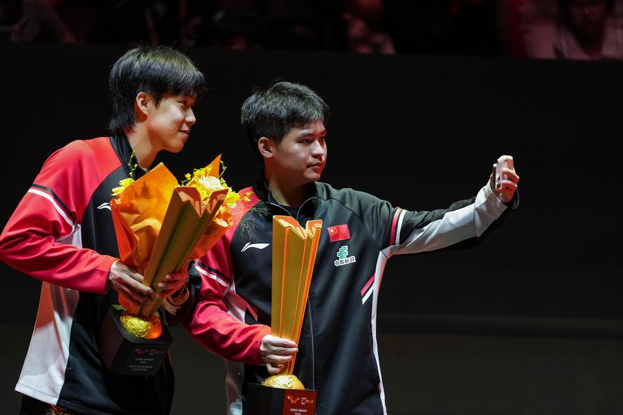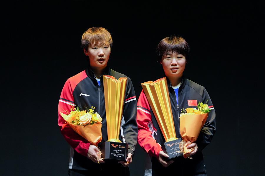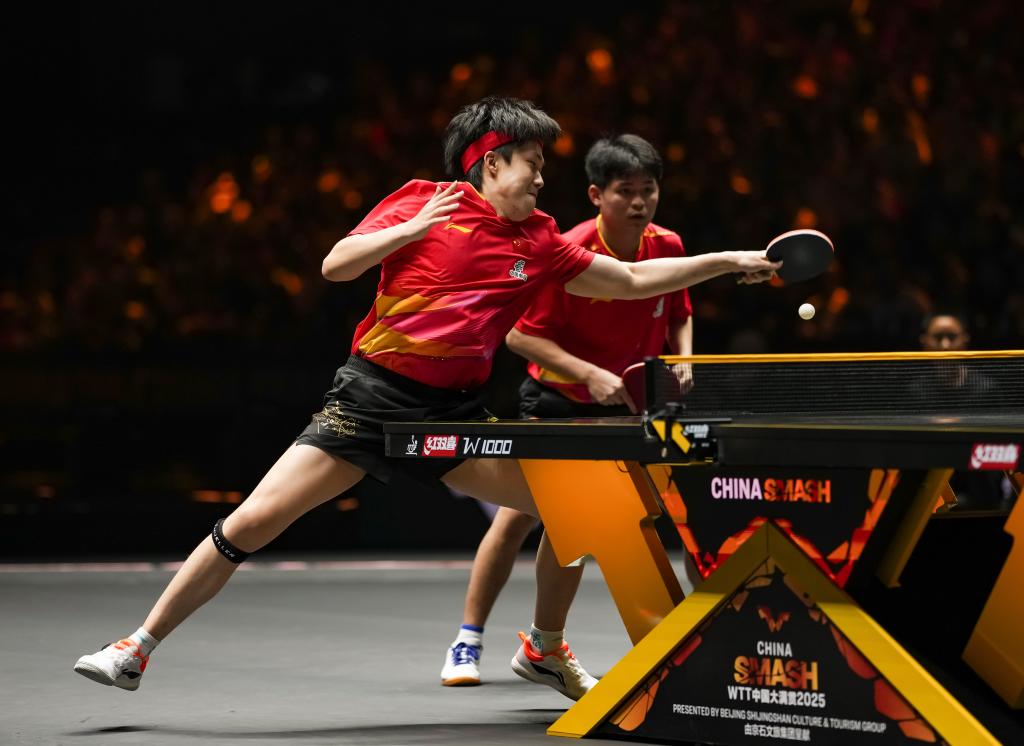BEIJING, Oct. 4 (Xinhua) -- Chinese paddlers captured both women's and men's doubles titles, while Xiang Peng sent the home crowd into a frenzy after beating Brazilian ace Hugo Calderano in a thrilling seven-game men's singles quarterfinal at the World Table Tennis (WTT) China Smash on Saturday.