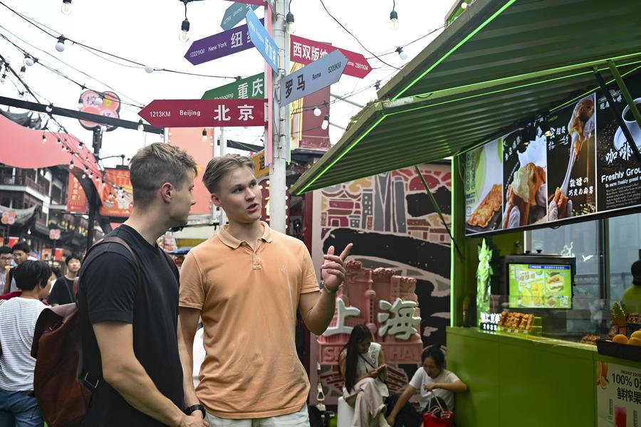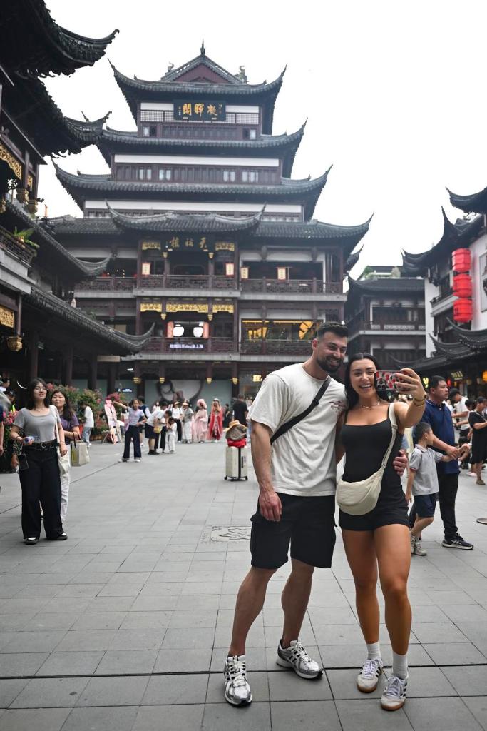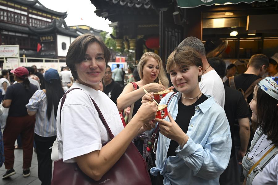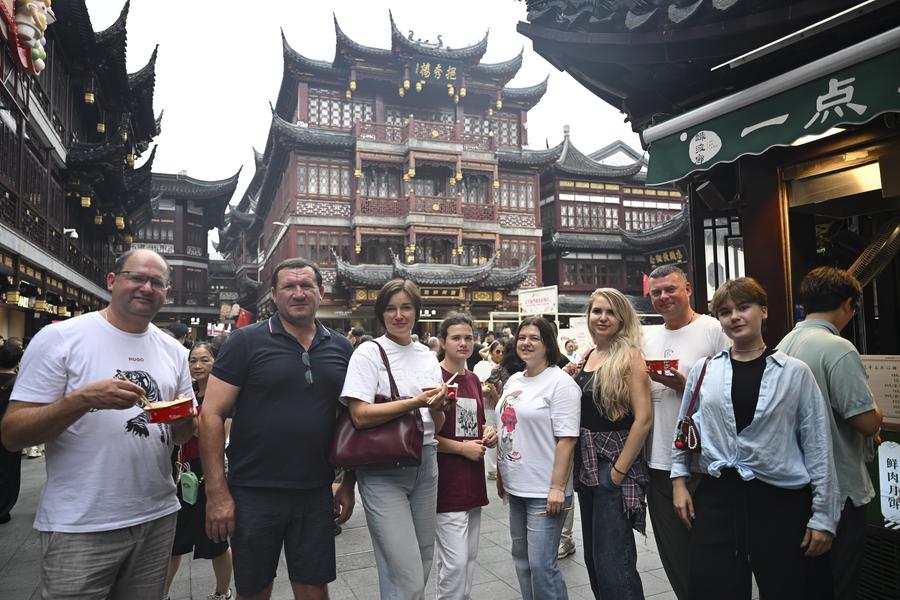 Shuanet (L) and Lolita from Russia pose for photos at Yuyuan Garden Mall in east China's Shanghai, Oct. 3, 2025. (Xinhua/Chen Haoming)Tourists from Russia take selfies at the Bund area in east China's Shanghai, Oct. 4, 2025. (Xinhua/Chen Haoming)Tourists from Russia taste snacks at Yuyuan Garden Mall in east China's Shanghai, Oct. 3, 2025. (Xinhua/Chen Haoming)Tourists from Russia pose for photos at Yuyuan Garden Mall in east China's Shanghai, Oct. 3, 2025. The eastern Chinese megacity of Shanghai received a whopping 4.1 million overseas visitors from January to August this year. (Xinhua/Chen Haoming)Australian tourists Gio Valentino (L) and Christina Karropoulos take selfies at Yuyuan Garden Mall in east China's Shanghai, Oct. 3, 2025. (Xinhua/Chen Haoming)Perttu Nevala (L) and Emil Halomen from Finland visit Yuyuan Garden Mall in east China's Shanghai, Oct. 3, 2025. (Xinhua/Chen Haoming)A tour group from Britain is pictured at Yuyuan Garden Mall in east China's Shanghai, Oct. 3, 2025. (Xinhua/Chen Haoming)Foreign tourists select Qipao, a traditional Chinese dress for women, at a store on Nanjing Road in east China's Shanghai, Oct. 4, 2025. (Xinhua/Chen Haoming)■