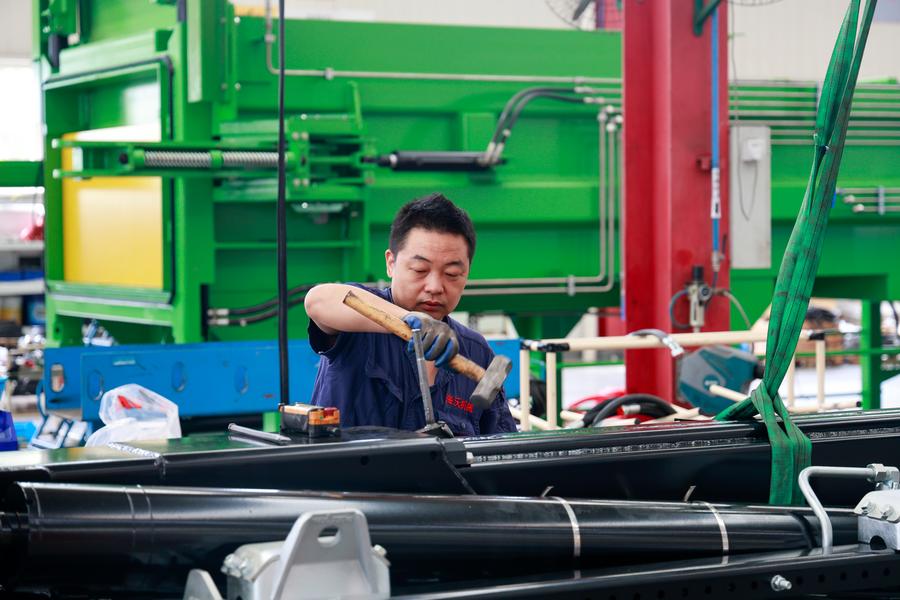 NANJING, Oct. 4 (Xinhua) -- The cylinder plant of Hyva Mechanics (China) Co., Ltd., located in Yangzhou City, east China's Jiangsu Province, was bustling with activity when Yin Yan, the company's operations and supply chain director, proudly introduced the company's hydraulic cylinder products to a group of visiting journalists.