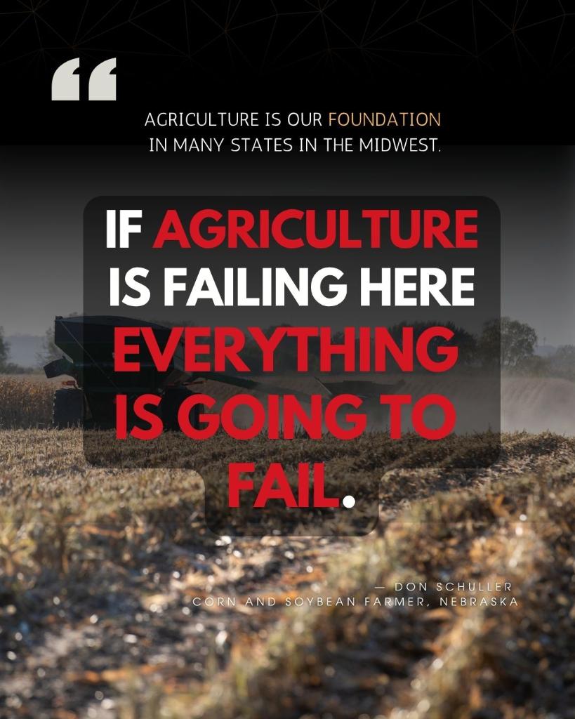 "Agriculture is our foundation in many states in the Midwest. If agriculture is failing here everything is going to fail," said Don Schuller, a corn & soybean farmer in the U.S. state of Nebraska.