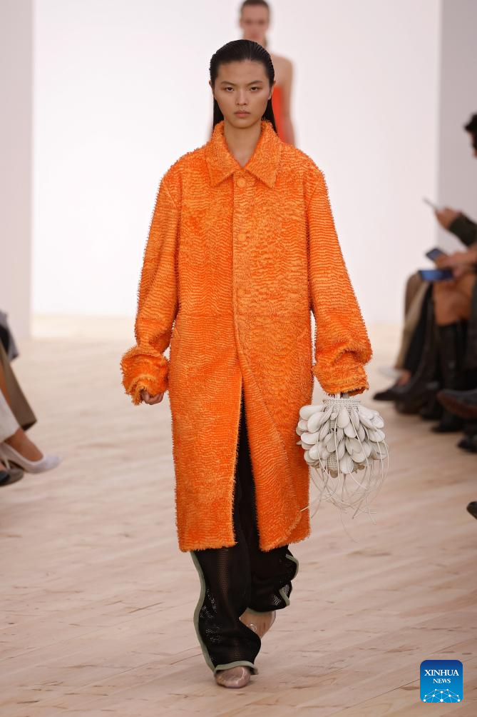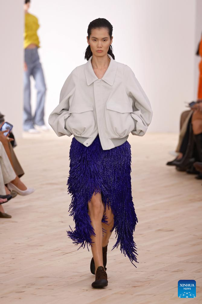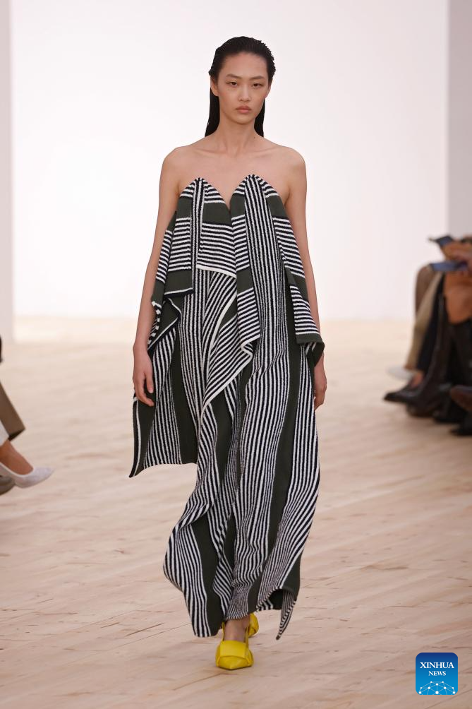 A model presents creations from the ready-to-wear Spring/Summer 2026 collections by Loewe during the Paris Fashion Week, in Paris, France, on Oct. 3, 2025. (MeetEurope/Handout via Xinhua)