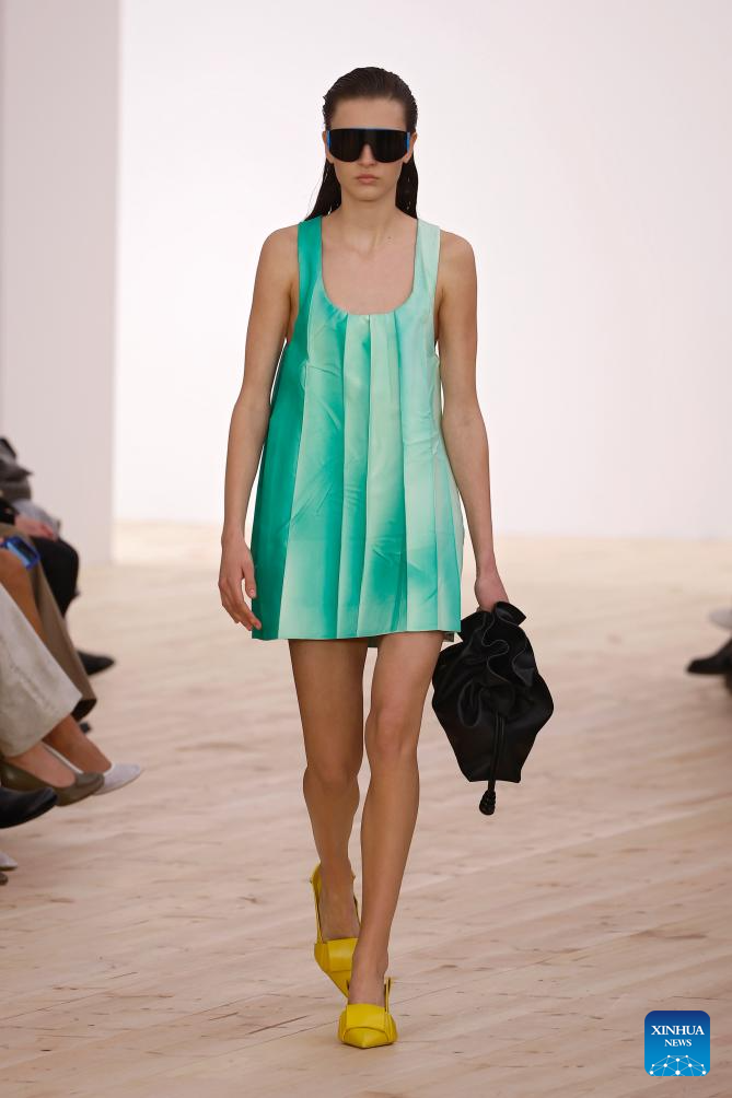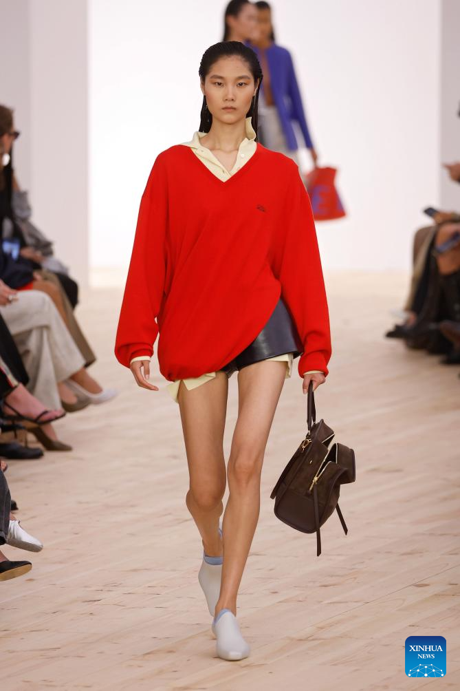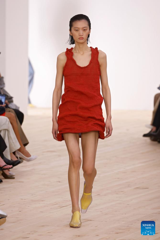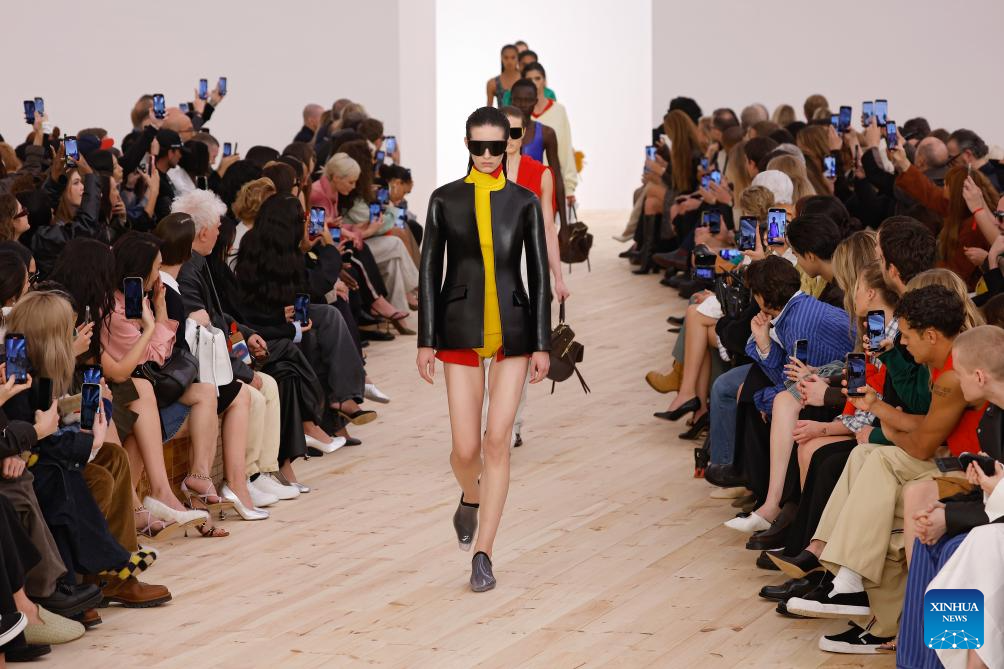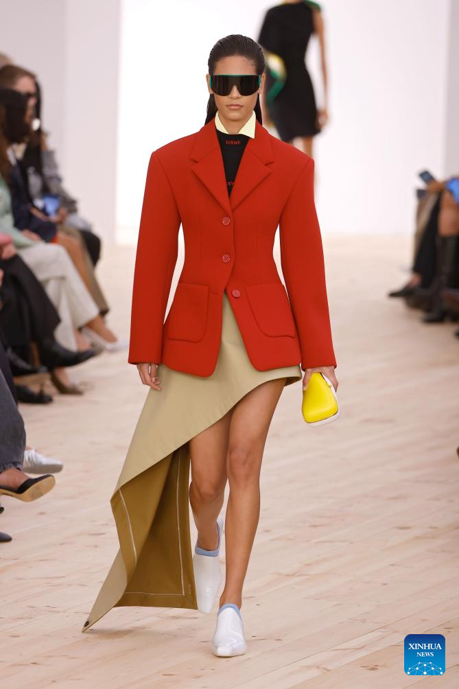 Models present creations from the ready-to-wear Spring/Summer 2026 collections by Loewe during the Paris Fashion Week, in Paris, France, on Oct. 3, 2025. (MeetEurope/Handout via Xinhua)