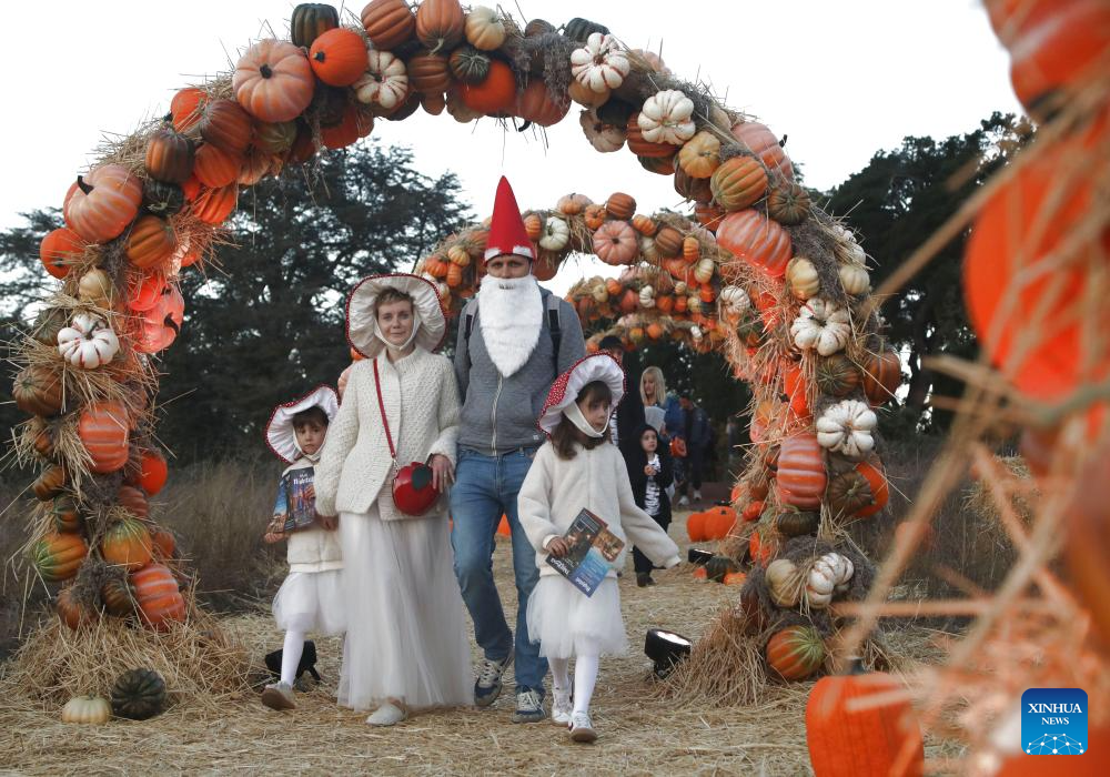 People in festive attire attend the Nightfall event at the Filoli Historic House & Garden in Woodside, California, the United States, Oct. 3, 2025. The second Nightfall opened here on Friday and will last till Nov. 10. (Photo by Liu Yilin/Xinhua)