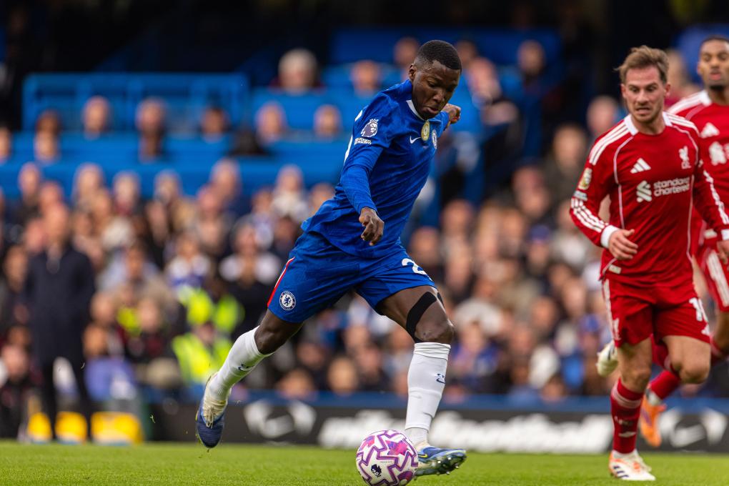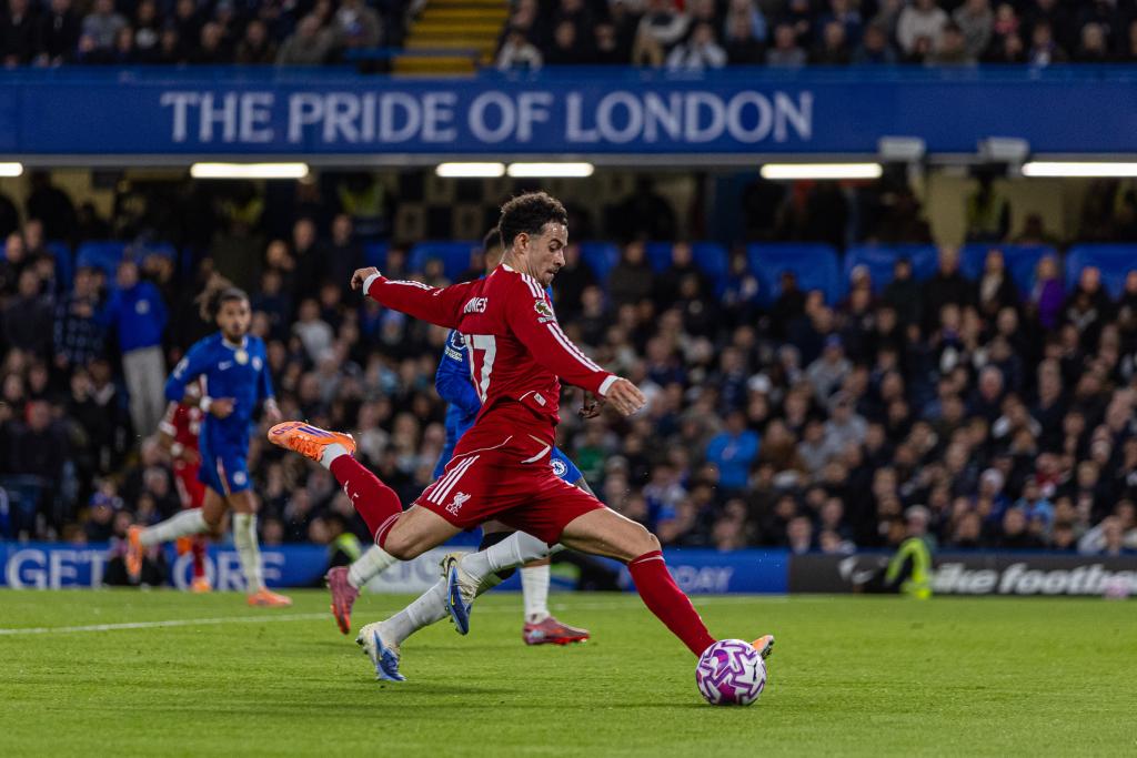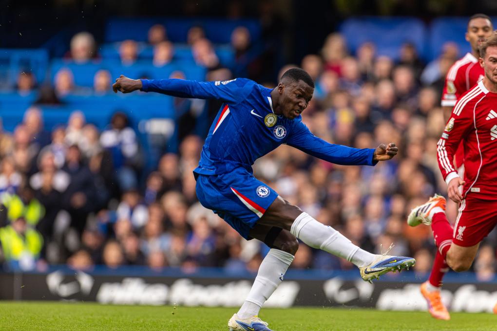 Liverpool's Curtis Jones shoots during the English Premier League match between Chelsea FC and Liverpool FC in London, Britain, on Oct. 4, 2025. (Xinhua)