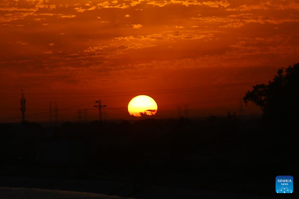 This photo taken on Oct. 4, 2025 shows a sunset view in southern Pakistan's Hyderabad. (Str/Xinhua)