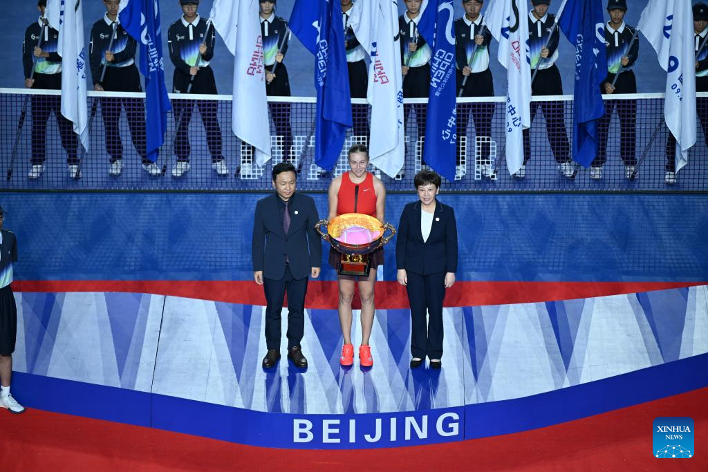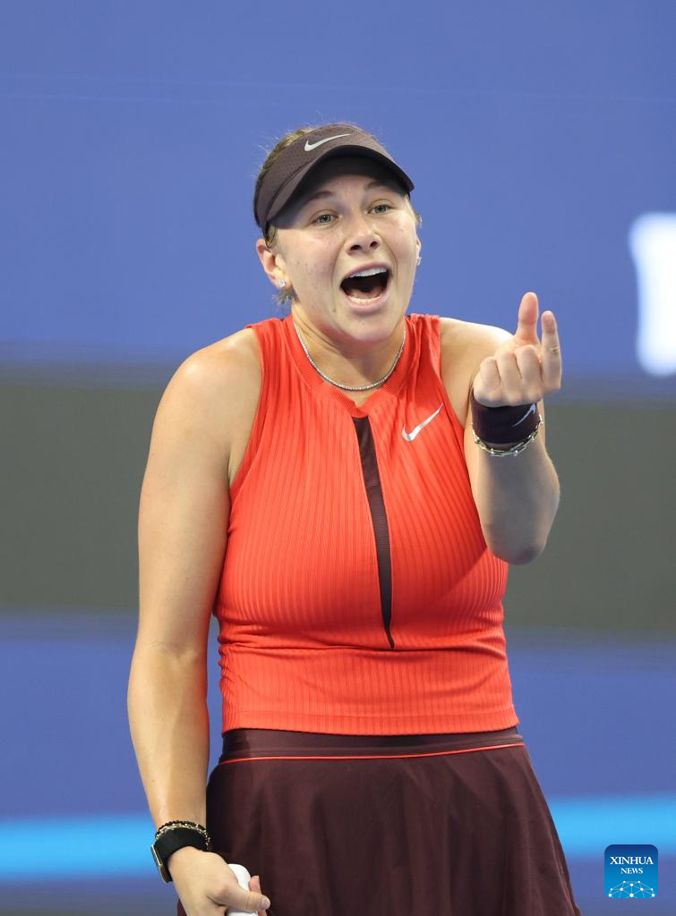 BEIJING, Oct. 5 (Xinhua) -- Amanda Anisimova captured her first China Open title after defeating Czech rising star Linda Noskova 6-0, 2-6, 6-2 in the women's singles final here on Sunday.