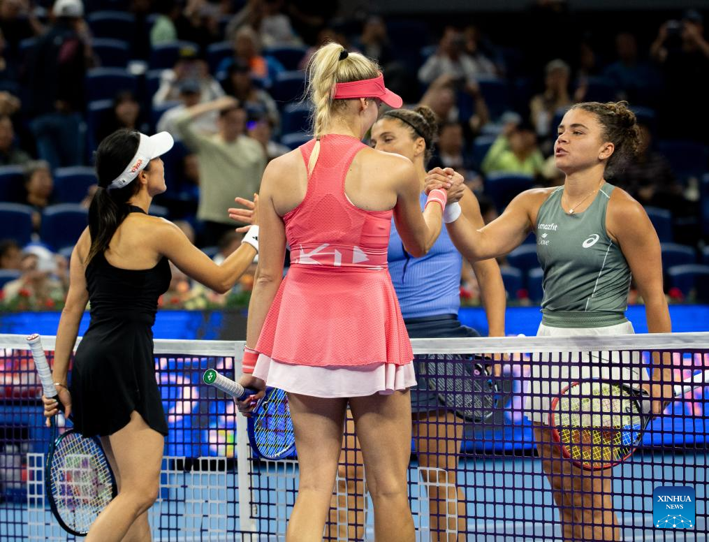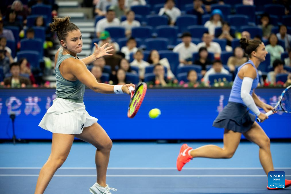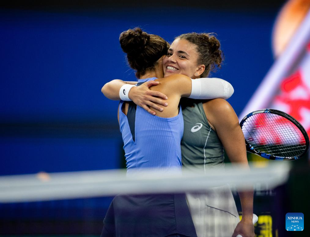 In the women's doubles final, second seeds Jasmine Paolini and Sara Errani of Italy rallied past Japan's Miyu Kato and Hungary's Fanny Stollar 6-7(1), 6-3, 10-2 to become the first pair to successfully defend the China Open women's doubles title.