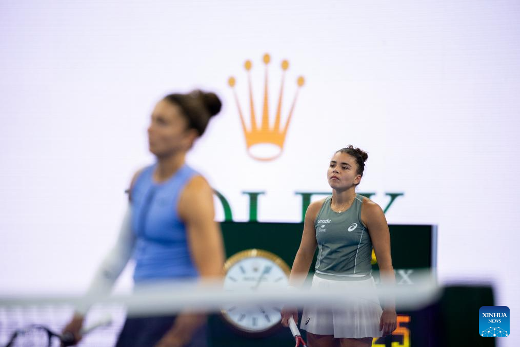 Amanda Anisimova competes during the women's singles final match between Amanda Anisimova of the United States and Linda Noskova of the Czech Republic at 2025 China Open tennis tournament in Beijing, China, Oct. 5, 2025. (Xinhua/Bai Xuefei)