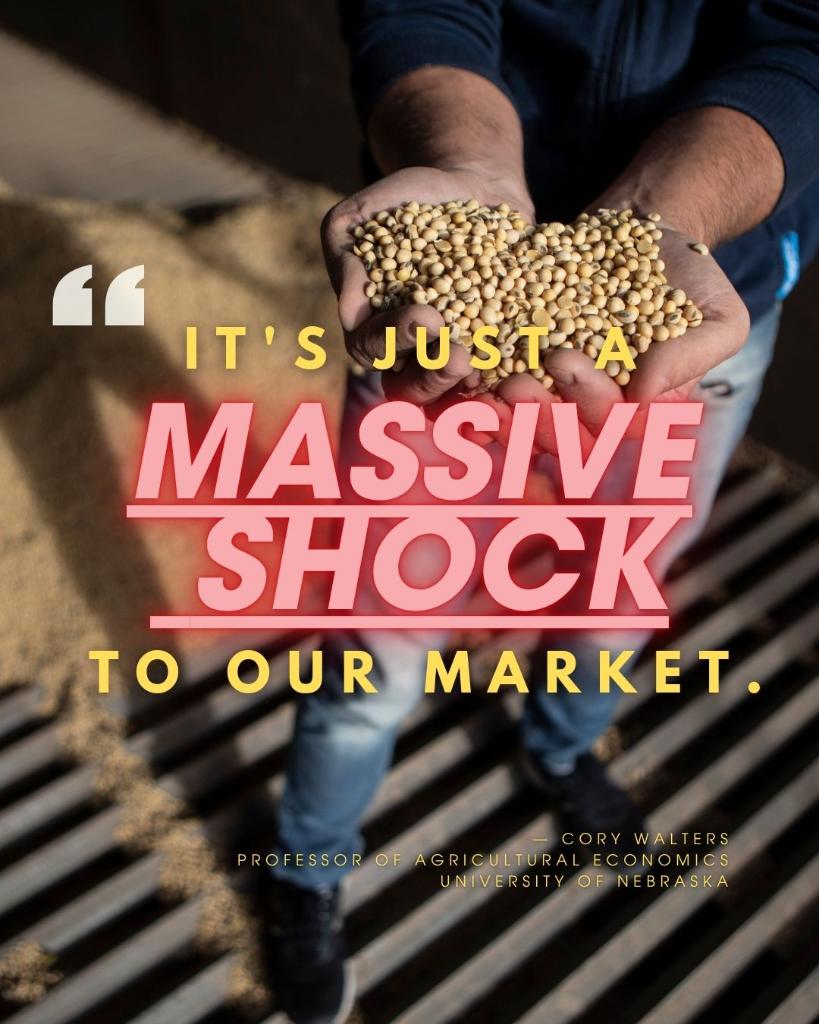 "It's just a massive shock to our markets," said Cory Walters, an associate professor of agricultural economics at the University of Nebraska-Lincoln in the United States.