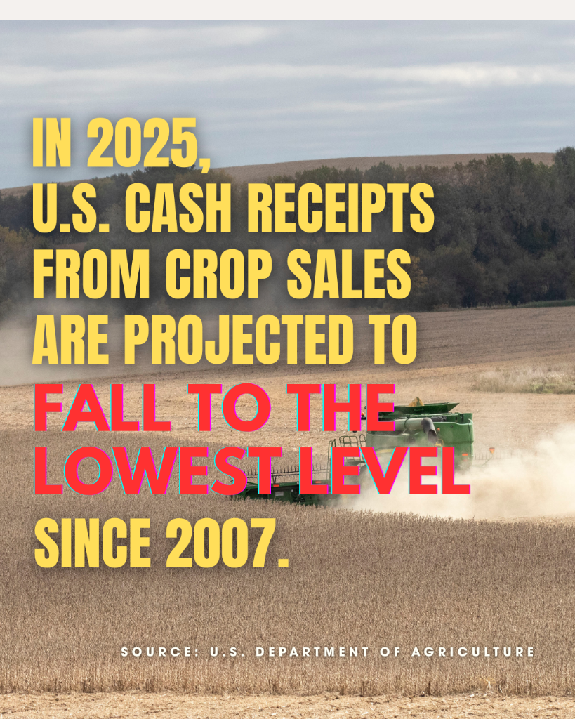 Cash receipts from U.S. crop sales are expected to decline by 2.5%, falling from $242.7 billion in 2024 to $236.6 billion in 2025, marking the lowest level since 2007, according to the U.S. Department of Agriculture.