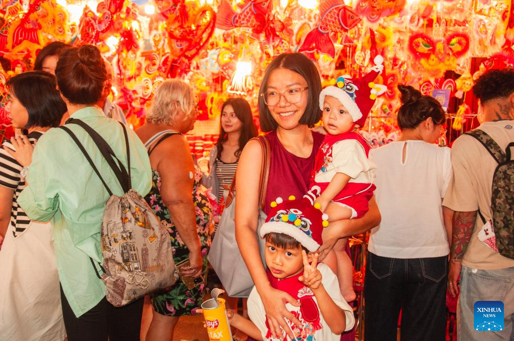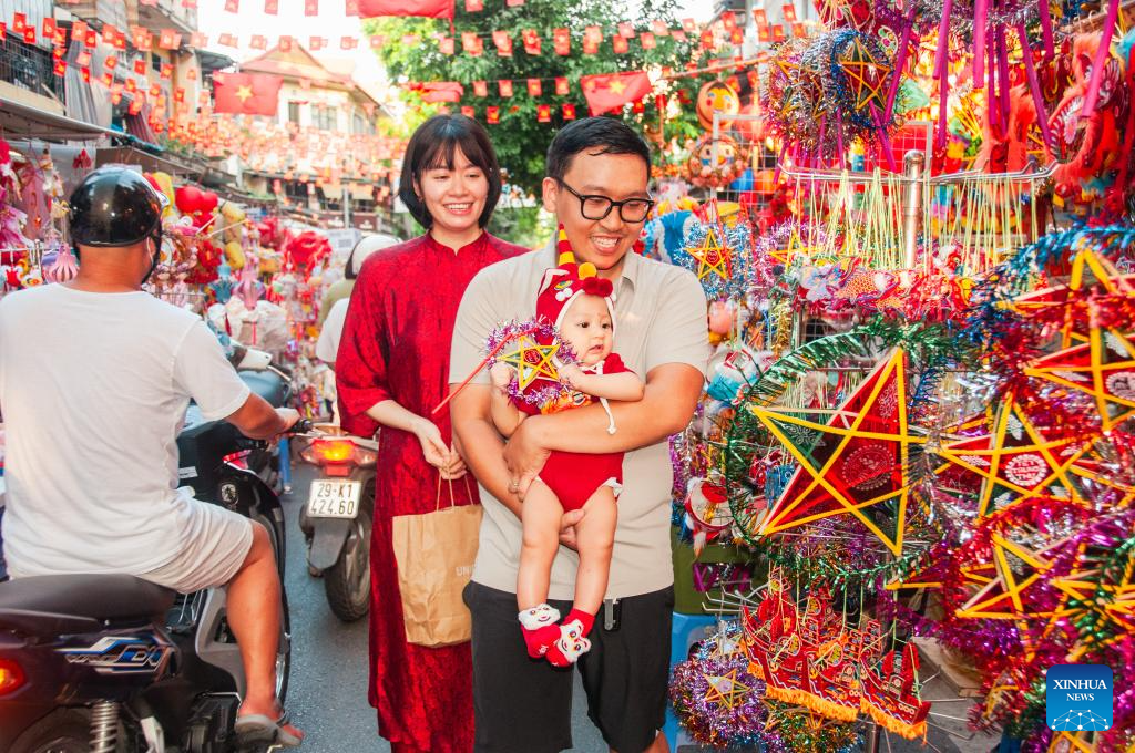 HANOI, Oct. 5 (Xinhua) -- As the Mid-Autumn Festival draws near, Hanoi's Old Quarter glows under the warm light of lanterns, with families and visitors filling Hang Ma Street to celebrate one of Vietnam's most beloved traditional holidays.