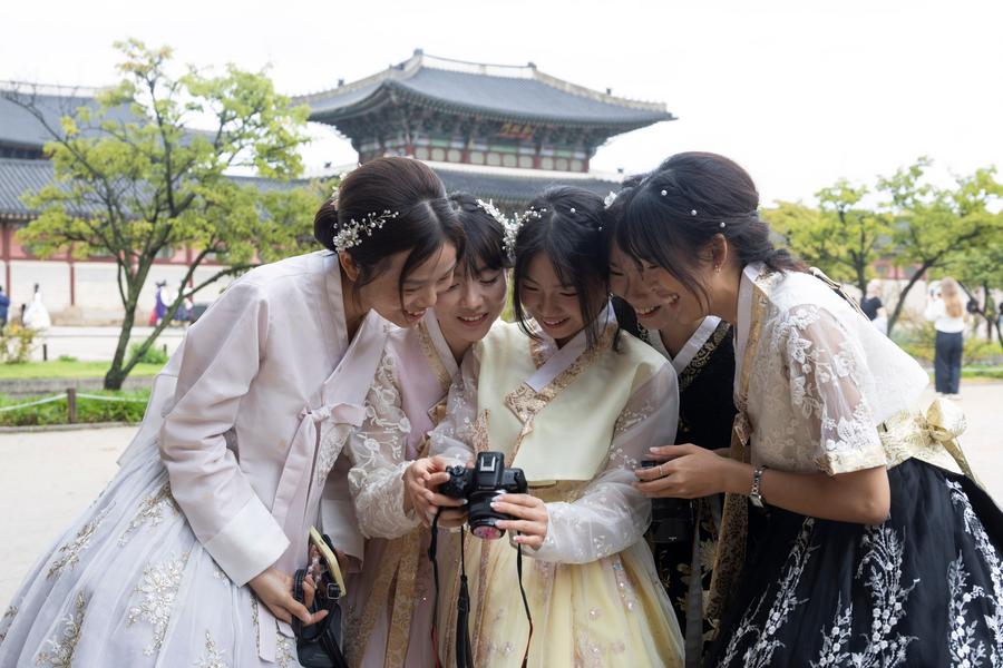 People in traditional Korean attire "Hanbok" review photos at the Gyeongbokgung Palace in Seoul, South Korea, Oct. 5, 2025. (Photo by Jun Hyosang/Xinhua)People visit the Gyeongbokgung Palace in Seoul, South Korea, Oct. 5, 2025. (Photo by Jun Hyosang/Xinhua)People in traditional Korean attire "Hanbok" visit the Gyeongbokgung Palace in Seoul, South Korea, Oct. 5, 2025. (Photo by Jun Hyosang/Xinhua)People in traditional Korean attire "Hanbok" visit the Gyeongbokgung Palace in Seoul, South Korea, Oct. 5, 2025. (Photo by Jun Hyosang/Xinhua)People visit the Gyeongbokgung Palace in Seoul, South Korea, Oct. 5, 2025. (Photo by Jun Hyosang/Xinhua)■