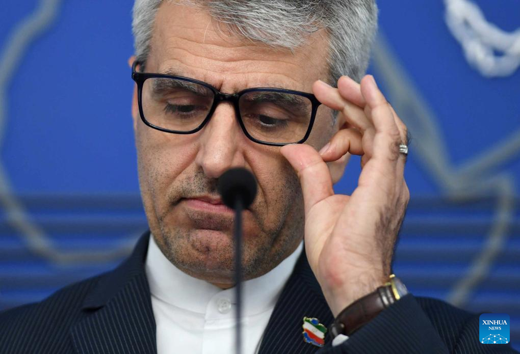 Iranian Foreign Ministry spokesman Esmaeil Baghaei attends a weekly press conference in Tehran, Iran, on Oct. 6, 2025. Iran has no plans to hold talks with France, Britain and Germany following their move to trigger the "snapback" mechanism to reimpose UN sanctions, Baghaei said on Monday. (Xinhua/Sha Dati)