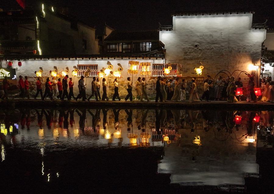 GLOBALink | Mid-Autumn lanterns illuminate ancient village in E China's Anhui -Xinhua
