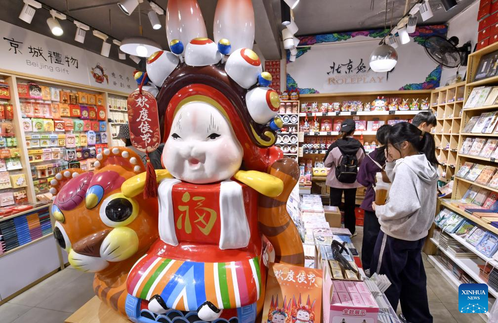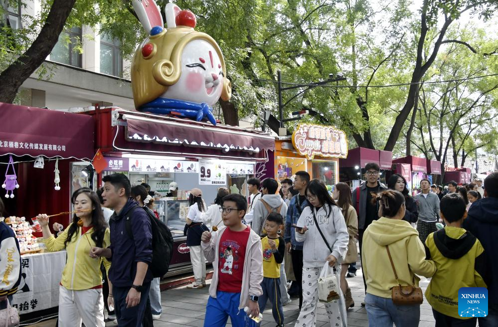 Tourists visit the Yandaixiejie street in Beijing, capital of China, Oct. 6, 2025. People participated in diverse traditional folk cultural events on Monday to celebrate the traditional Mid-Autumn Festival. (Xinhua/Li Xin)