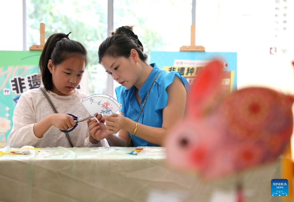 A girl and her parent make a lantern in Suzhou, east China's Jiangsu Province, Oct. 6, 2025. People participated in diverse traditional folk cultural events on Monday to celebrate the traditional Mid-Autumn Festival. (Photo by Hang Xingwei/Xinhua)