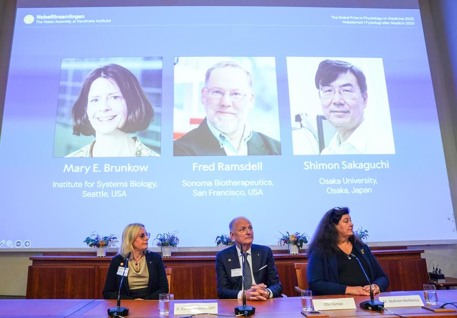 Mary E. Brunkow, Fred Ramsdell, and Shimon Sakaguchi were awarded the 2025 Nobel Prize in Physiology or Medicine on Monday for their discoveries concerning peripheral immune tolerance, the Nobel Assembly at Sweden's Karolinska Institute announced.