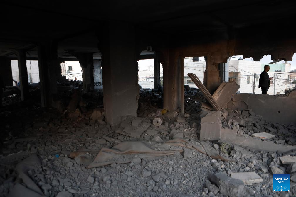 Palestinians inspect the ruins of a house demolished by Israeli army forces in the West Bank city of Hebron, Oct. 6, 2025. (Photo by Mamoun Wazwaz/Xinhua)
