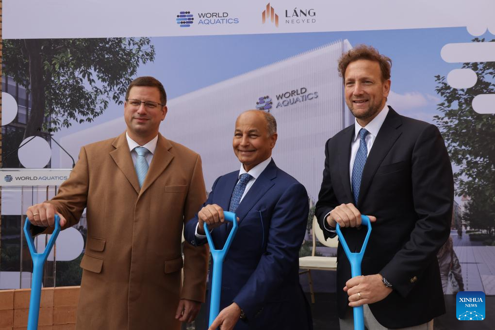 BUDAPEST, Oct. 7 (Xinhua) -- A landmark development is starting in Budapest's 13th District on Tuesday, as the foundation stone was laid for the new global headquarters of World Aquatics (formerly FINA). The world's third-largest sports federation is relocating to Budapest when its new home will feature not only its main office but a state-of-the-art global aquatics training center.
