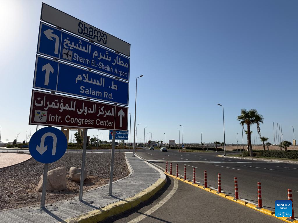 Photo taken on Oct. 8, 2025 shows road signs in Sharm el-Sheikh, Egypt. (Xinhua)
