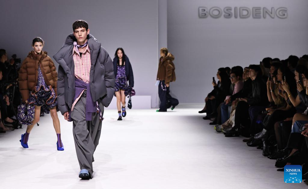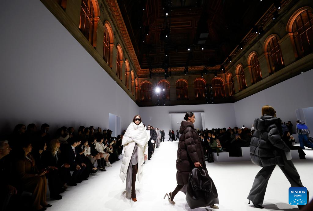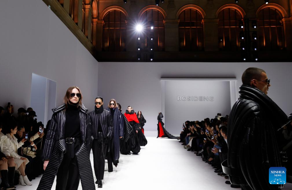 Models present creations by Chinese down fashion brand Bosideng as part of its Master Puff collection during the Paris Fashion Week in Paris, France, on Oct. 7, 2025. (Xinhua/Gao Jing)
